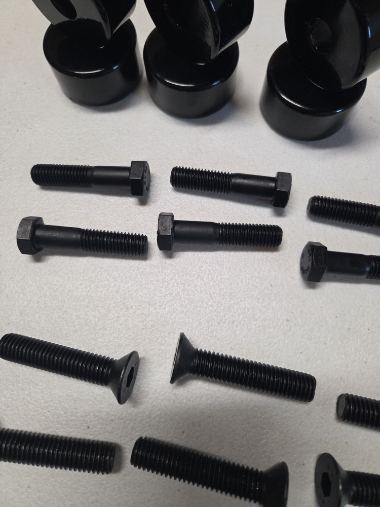The 1997-2006 Jeep TJ/LJ Jeep Wrangler Transfer Case Drop Kit Spacers is a performance part made of CNC Machined T6 Billet Aluminum. It is designed for 1987-1995 Jeep Wrangler YJ and 1997-2006 Jeep TJ/LJ Wrangler models, with a black anodized surface finish. The kit includes transfer case mount brackets and mounting hardware, providing a universal fitment for custom performance enhancement. Perfect for those looking to improve their vehicle's chassis, suspension, and brake system for optimal off-road performance. 1 inch tall spacers. Shelf bin 2