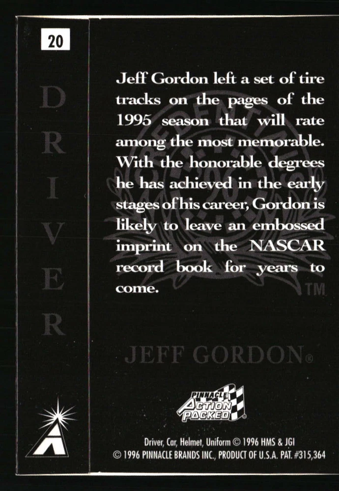 Jeff Gordon 1996 Pinnacle Action Packed Driver #20 Racing Card