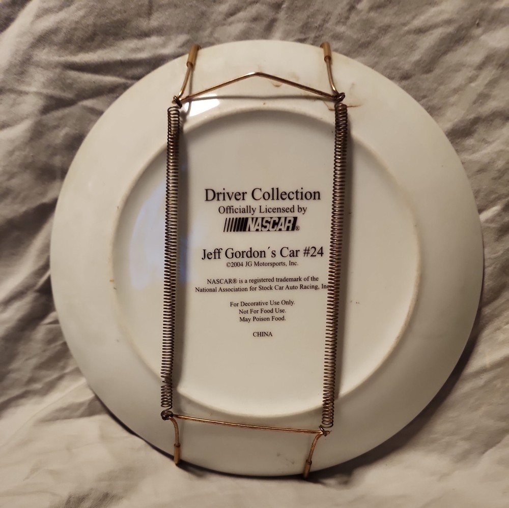 The Jeff Gordon #24 Driver Collection NASCAR Decorative Plate is an officially licensed 8-inch plate featuring Jeff Gordon's iconic racing number and team, JG Motorsports. Made with multi-color designs, this unisex adult product is a great addition to any NASCAR fan's collection. The plate is a unique and stylish way to showcase your love for the sport of auto racing and the legendary driver, Jeff Gordon. Made in China, this NASCAR-branded decorative piece is a must-have for any fan of the sport.