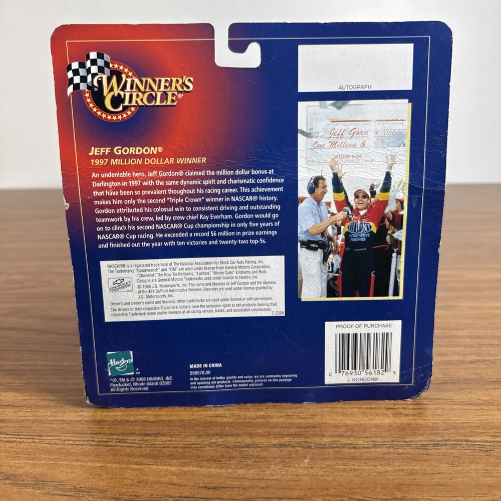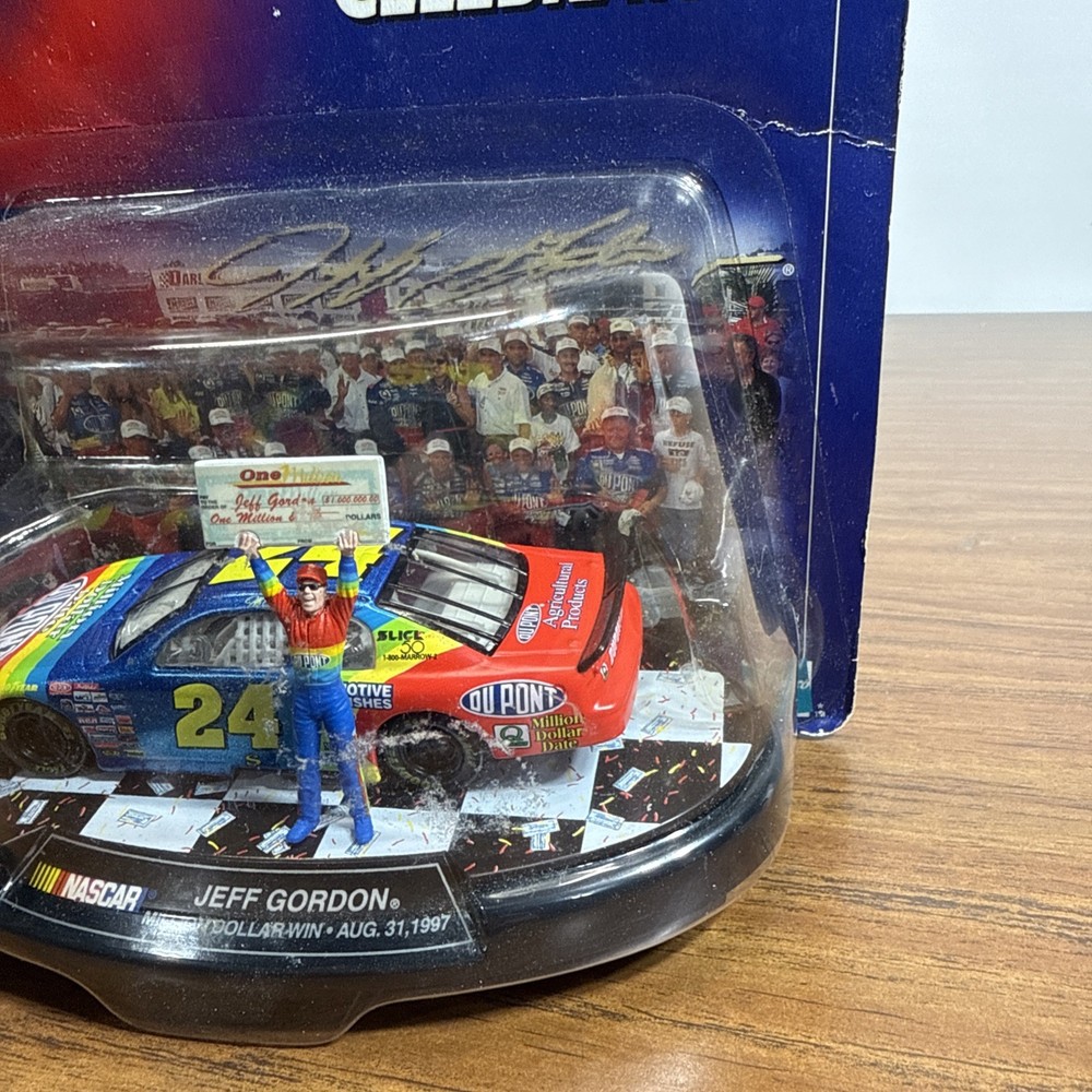 The Jeff Gordon Dupont NASCAR Winners Circle 1997 Million Dollar Victory Celebration is a special event commemorating Jeff Gordon's historic victory at the NASCAR championship race in 1997. This exclusive celebration featured a variety of activities and souvenirs for fans to enjoy, making it a must-have for any NASCAR enthusiast. With the official branding of Winners Circle and the involvement of Jeff Gordon himself, this event created lasting memories for those in attendance.