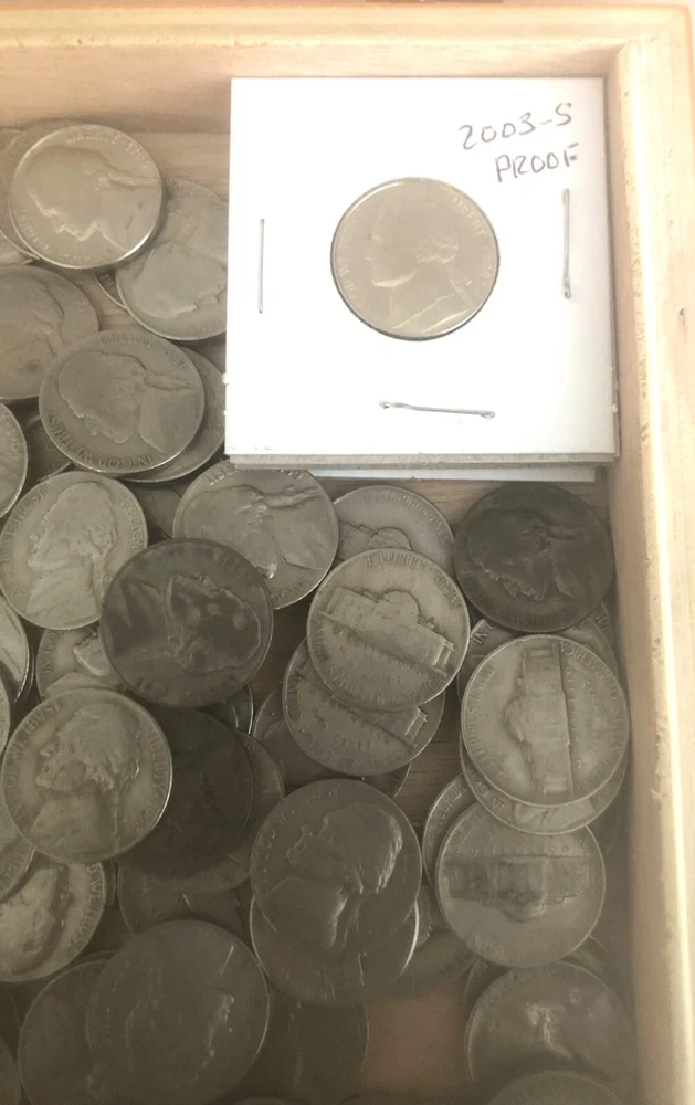 Jefferson Nickels Lot Mixed Dates w/ Wartime Silver. G-XF-Unc-Proof 175+ Coins Among the dates included: Date Mint Variety Cond 1939 VG-VF+ 1940 VG-VF+ 1940 D VF 1940 S VG-VF+ 1941 VG-VF+ 1941 D VG-VF+ 1941 S VF+ 1942 VG-VF+ 1942 P Silver G-VG+ 1942 D VF+ 1943 P Silver VG+ 1943 S Silver VF+ 1944 P Silver VG+ 1944 D Silver VG-VF+ 1945 P Silver VG+ 1945 S Silver F-VF+ 1946 VG-VF+ 1946 D VG-VF+ 1947 VG-VF+ 1948 VG-VF+ 1948 D VF+ 1949 VG-VF+ 1949 D VG-VF+ 1952 VG-VF+ 1952 D F-VF+ 1953 VG-VF+ 1953 D VF+ 1953 S VF+ 1954 VG-VF+ 1954 D VF+ 1954 S VF+ 1955 VF+ 1956 D VG-VF+ 1957 VF+ 1957 D VG-VF+ 1958 VF+ 1958 D VG-VF+ 1960 VF+ 1960 D VF+ 1962 VF+ 1962 D VF-XF+ 1964 VF-AU 1964 D VF-UNC 2001 S Proof 2002 S Proof 2003 S Proof 2010 S Proof 2023 P UNC