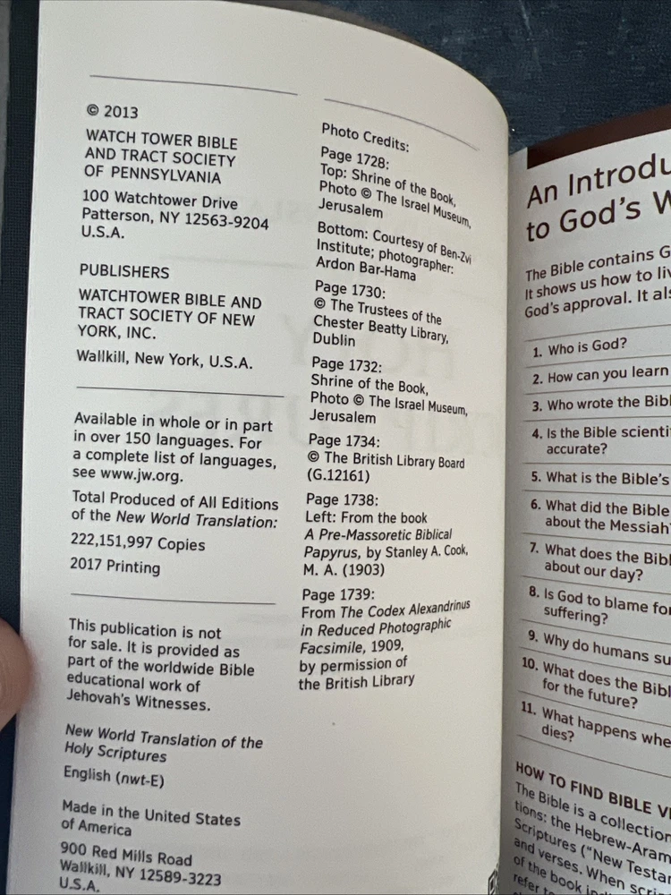 This is a new World Translation Holy Scriptures staff watchtower Bible, published by the Watchtower Bible & Tract Society of New York, Inc. in 2013. The Bible is in English language and is in a leather format. It is a textbook that is recommended for adult and further education, particularly for those who are interested in the subject area of Bibles. The publication name of this textbook is New WORLD Translation of the Holy Scriptures, and it is written by Inc. Staff Watchtower Bible and Tract Society of NY. The book is categorized under Books & Magazines, Textbooks, Education & Reference, and Textbooks.