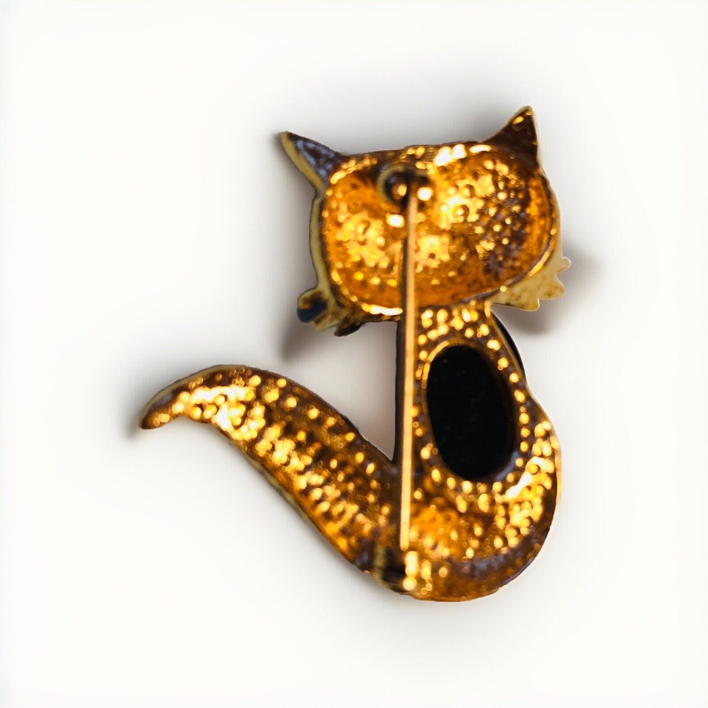 Adorn your outfit with a touch of vintage glamour with the SAO VTG MCM Gold Cat Brooch. This charming piece showcases a classic mid-century design, with a sleek gold finish that adds a warm, radiant lift to any ensemble. Its vibrant green eyes are highlighted by shimmering green rhinestones, creating a captivating sparkle that's sure to draw the eye. Crafted with attention to detail, the brooch features a delightful rhinestone collar that frames the cat's neck, offering an extra hint of elegance. Perfect for adding a sophisticated flair to your clothing or accessories, this brooch is a versatile addition to any jewelry collection, whether you're dressing up for a special occasion or accenting your everyday style.