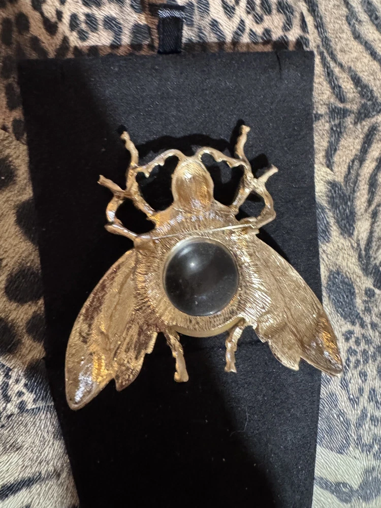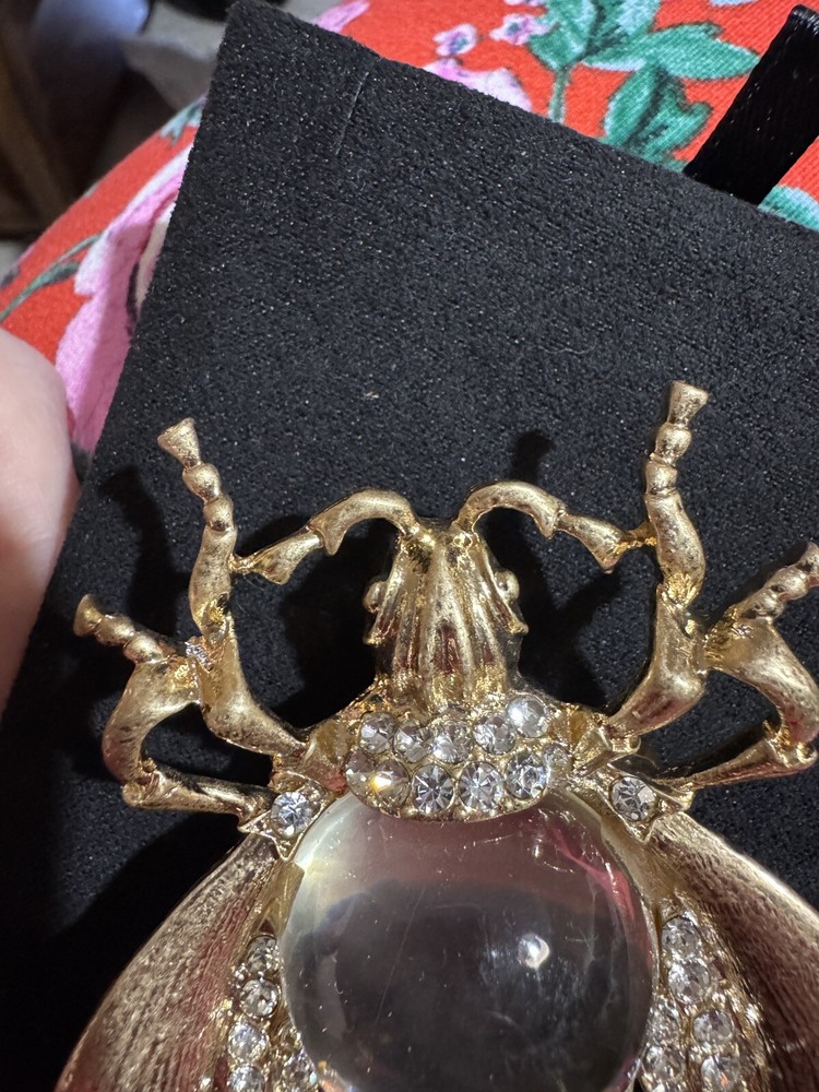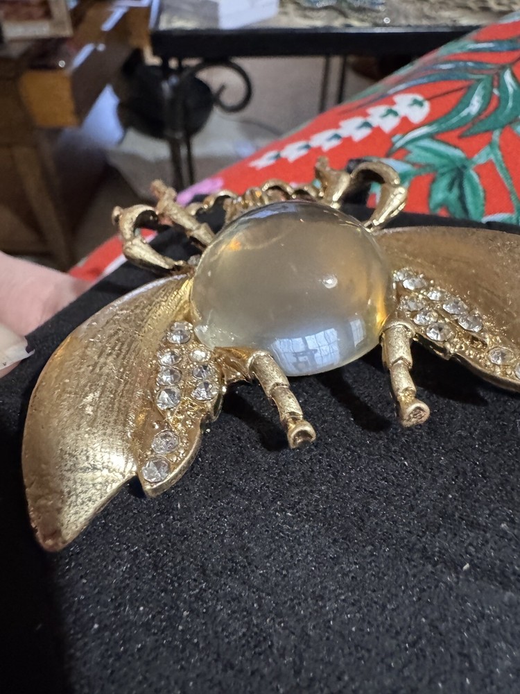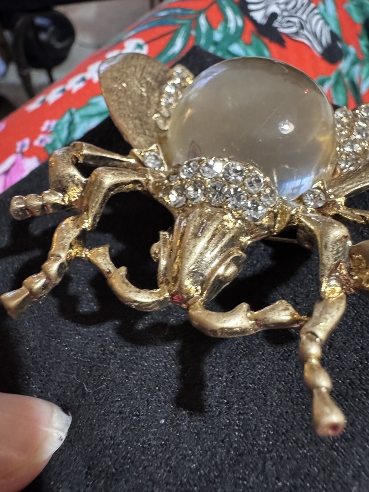 Jelly Belly Bug Insect Brooch Gold Fly Rhinestone Figural Pin Large Statement. Condition is Pre-owned. Shipped with USPS Ground Advantage.