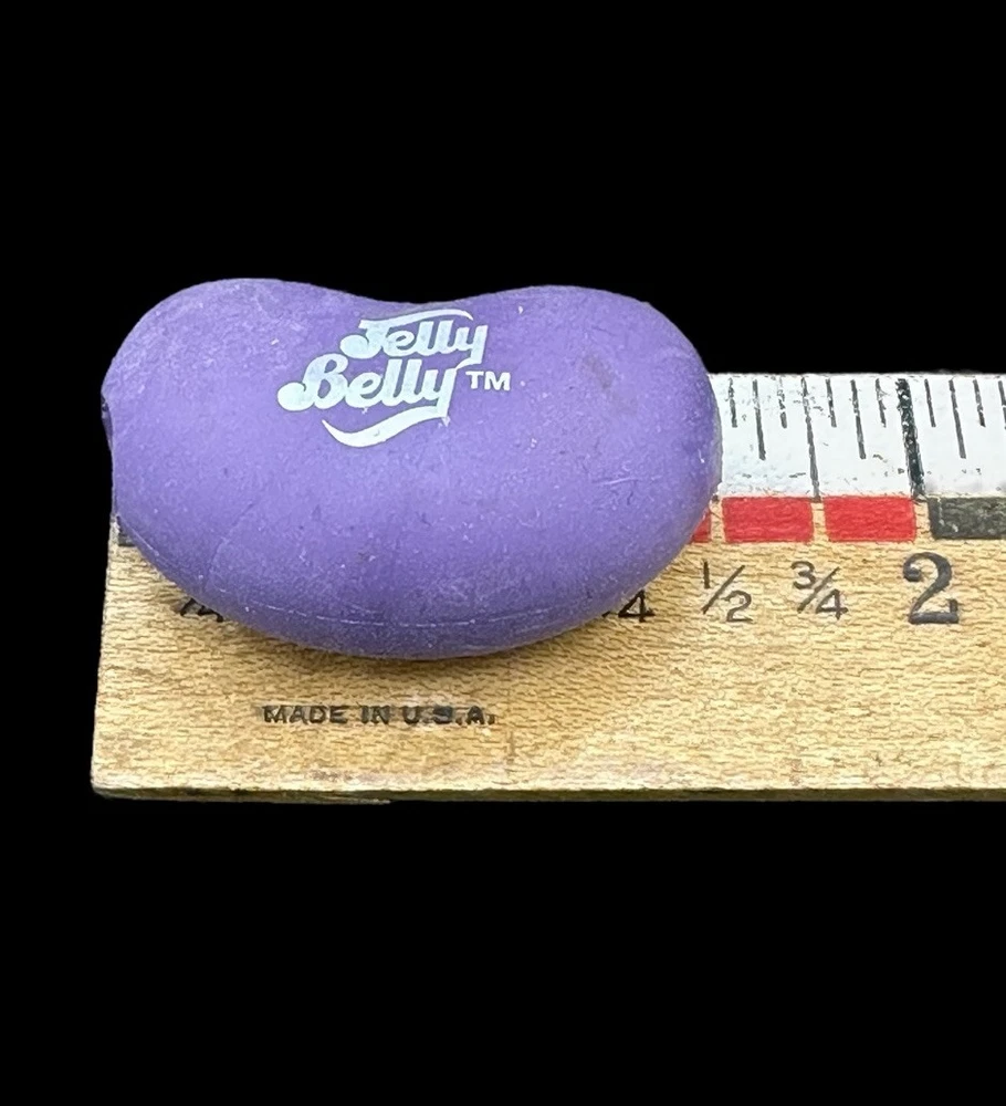 Jelly Belly Bean Scented Pencil Toppers Fragrant Purple Pink Red Blue These are all very fragrant. Some of the baggies have lost their stickiness so don’t seal. The purple bean does not have a bag. It also has a spit on the tip. See pics. About 1 1/2” long