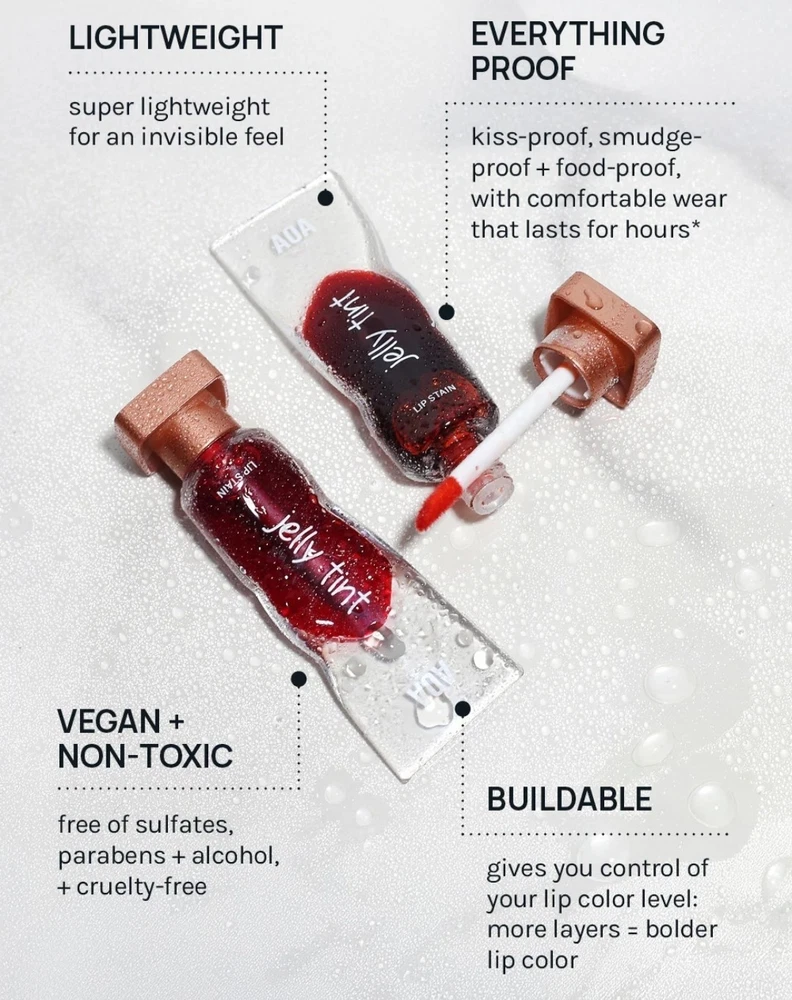 Jelly Lip Stains/ Lip Tints In Cherry Jam & Figgy BNIB. ☆Jelly Lip Stains in Cherry Jam & Figgy BNIB • Get vibrant, juicy lips that last all day with Jelly Tint Lip Stain. • This ultra-lightweight, buildable lip stain delivers a beautiful wash of color while keeping your lips soft + moisturized. • Perfect for a natural everyday look or layered for a bold statement, Jelly Tint glides on effortlessly + feels refreshing, never sticky. • Hydrating • Long-wearing • Smudge resistant • Non-toxic • Vegan • Cruelty-free #lipstains #lips #lipbundle #bundle #liptint