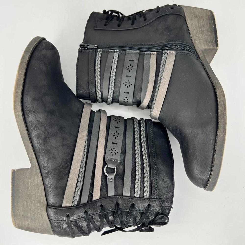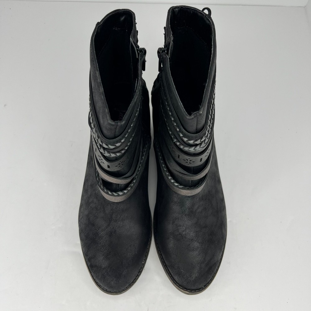 Elevate your shoe game with these stylish Jelly Pop Garbo ankle boots . Featuring a trendy almond toe and zip closure, these boots are perfect for any fashion-forward woman. The black faux leather upper material is accented with a zipper for added flair. These boots have a mid-height block heel and a polyurethane outsole for durability. The ankle strap adds a touch of sophistication and the foam insole provides comfort. Suitable for any season, these boots are a must-have addition to any wardrobe. Available in US size 10 and UK size 7.5, these Jelly Pop Garbo boots are perfect for any occasion. 100% CUSTOMER SATISFACTION IS OUR GOAL! Our items are always carefully examined for condition, measured if necessary, and photographed in a climate controlled and smoke-free environment. We make every attempt to accurately describe and clearly picture the items we have for sale. Please, ALWAYS view all of the photos. We value your business and our goal is your complete satisfaction. FAST SHIPPING All items are packaged with care and shipped out the same or next business day via USPS, FEDEX, or UPS with tracking numbers so you are always informed. RETURNS We offer a 30-day return policy. All items must be unused and unopened in the condition in which they were received, with original packaging, and all accessories included for return. REVIEWS - CUSTOMER SATISFACTION - COMMUNICATION We aim to make you happy. After you receive your shipment, please leave a positive review . If you have concerns or questions about your order, please contact us so we can resolve the issue. We will do our best to make you satisfied. THANK YOU FOR YOUR BUSINESS!
