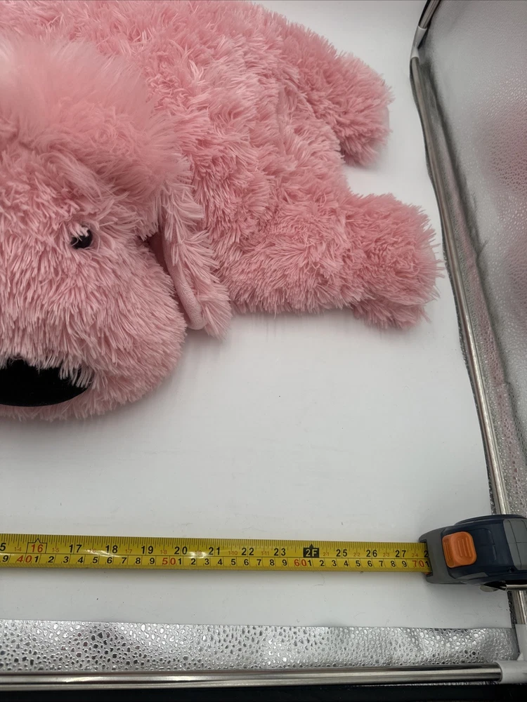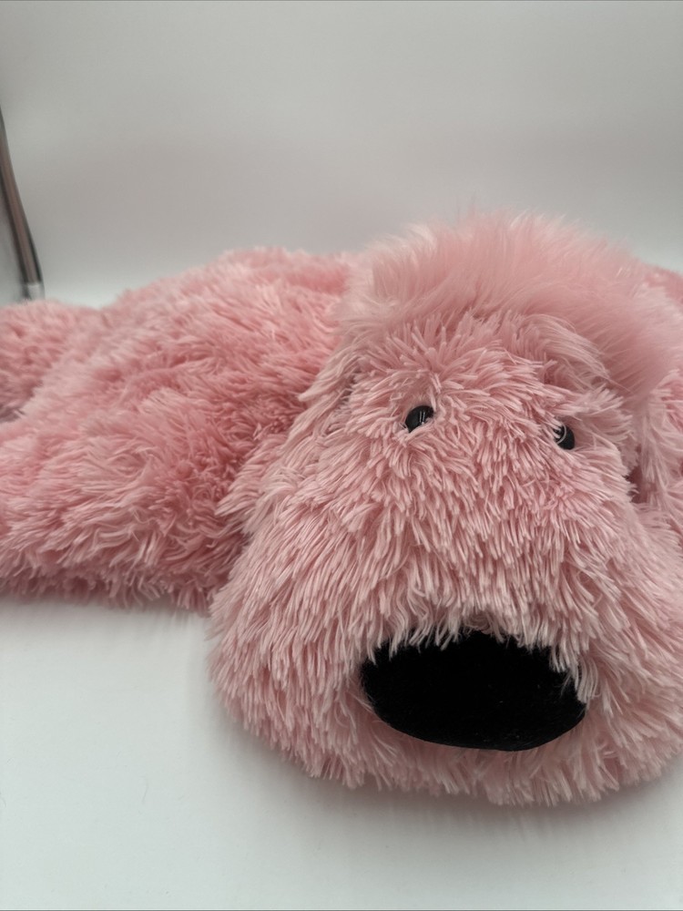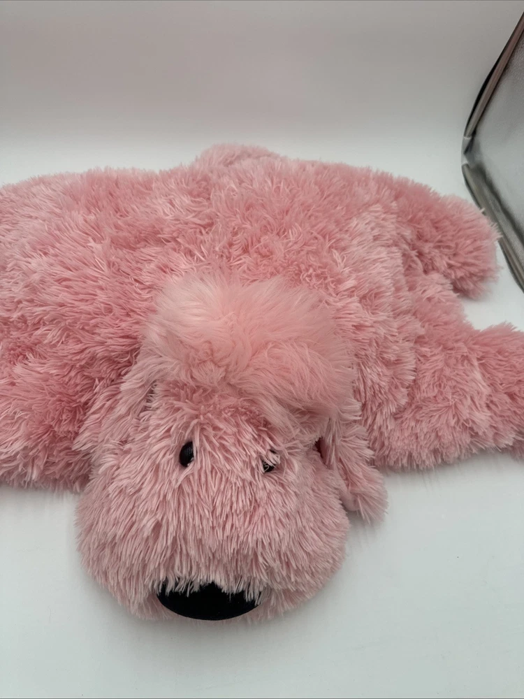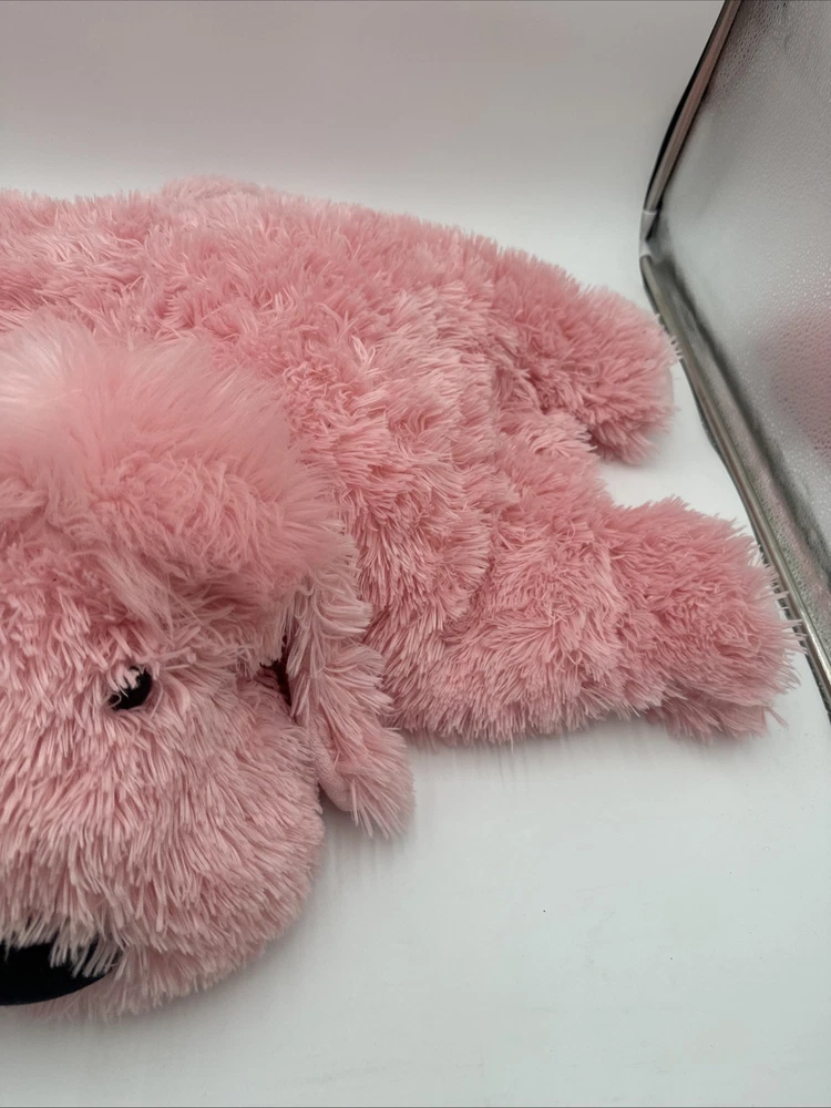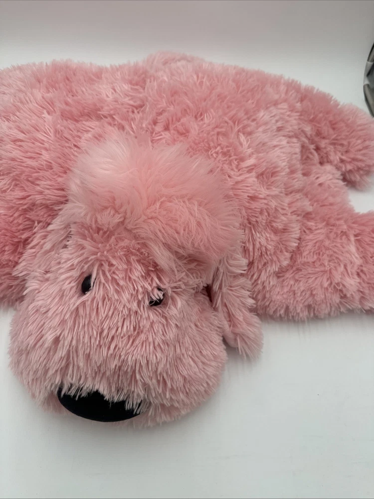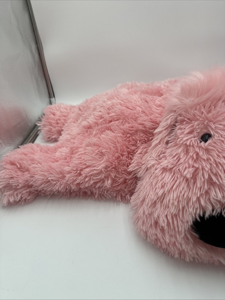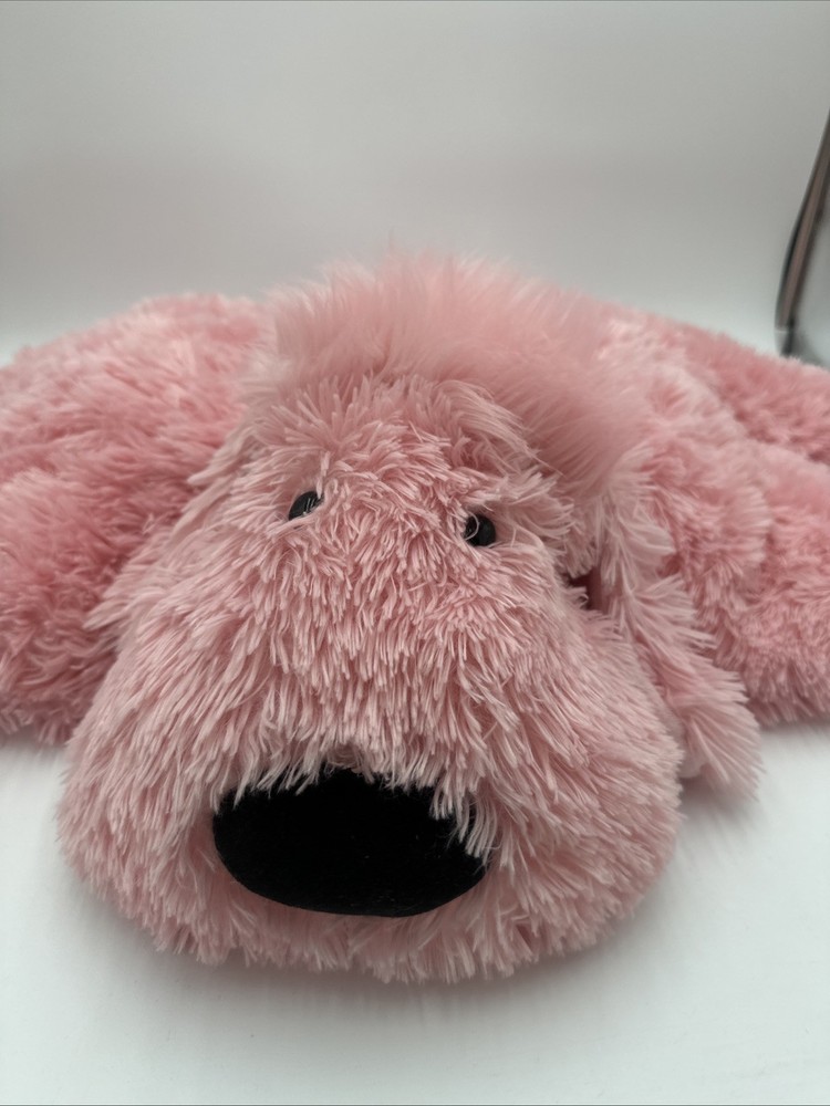 The Jellycat Floppy Large Truffles Dog Pillow is a delightful 28" plush stuffed animal that is sure to bring joy and comfort to any child or adult alike. With its soft pink color and adorable design, this Jellycat product is a sought-after item for those who appreciate high-quality stuffed animals. Made in China by the renowned brand Jellycat, this large-sized plush toy is perfect for cuddling and playtime.