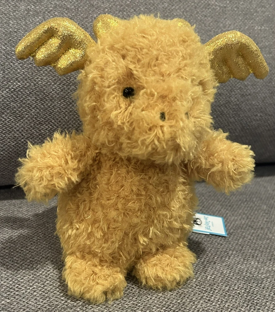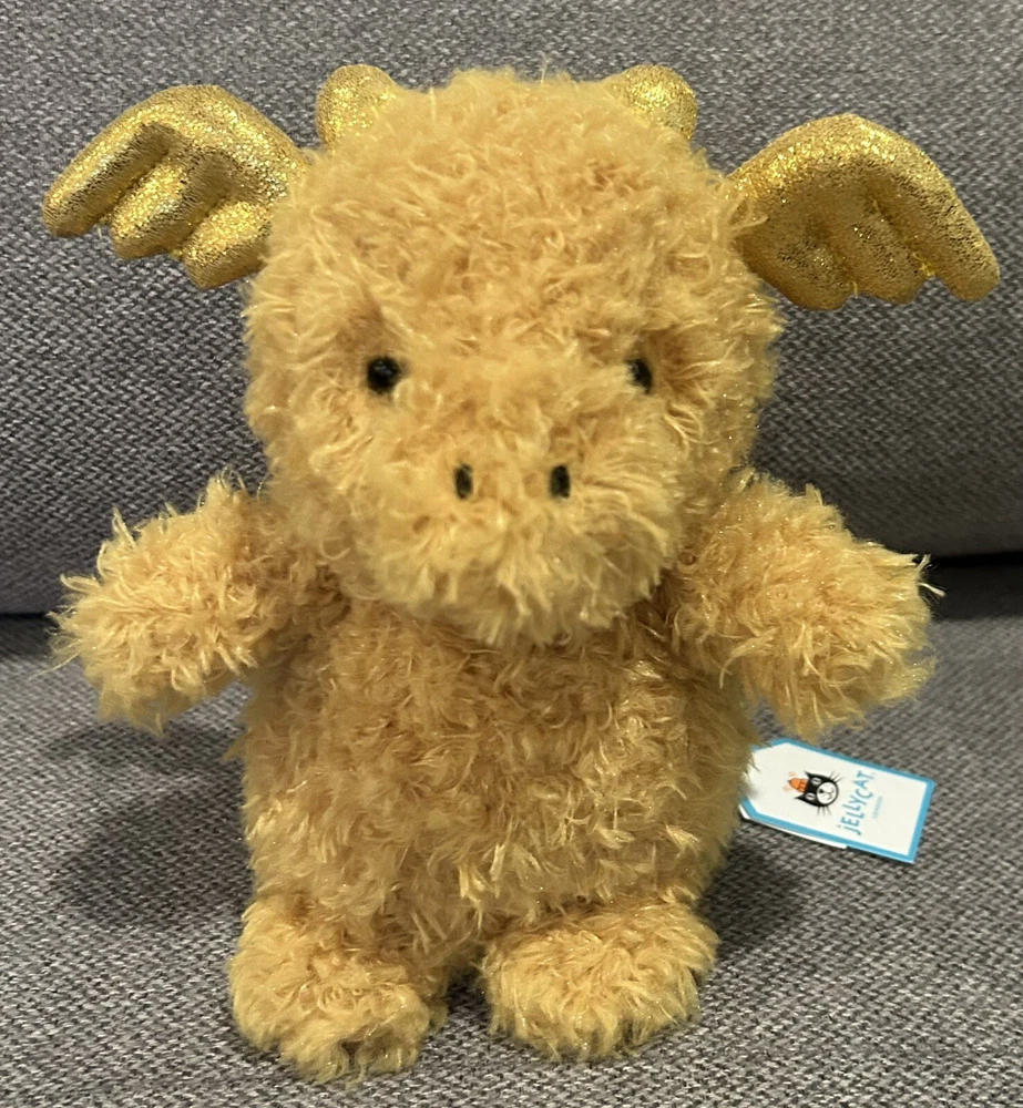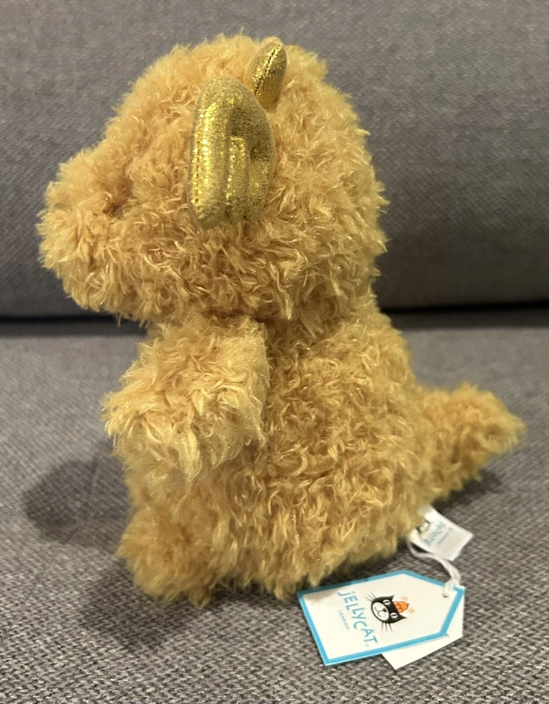 Dimensions: 7.1in x 3.9in x 3.1in Sitting Height: 7in This Jellycat Little Dragon is a must-have for any stuffed animal collector. With its vibrant yellow and gold details, sparkly wings, and fuzzy texture, it's sure to bring joy to people of all ages. Measuring in at a small size of 6-14 inches, it's perfect for cuddling and displaying. The Jellycat brand is known for its high-quality and adorable stuffed animals, and this Little Dragon is no exception. Whether you're looking to add to your collection or gift it to someone special, this toy is sure to bring a smile to anyone's face.