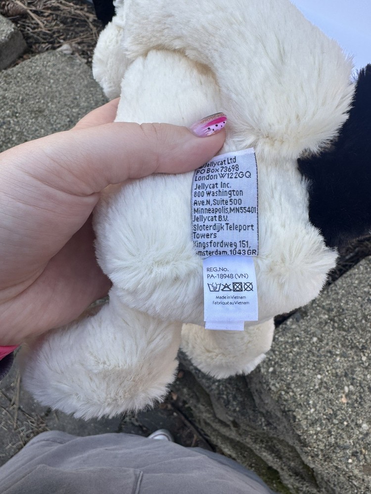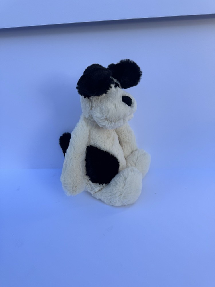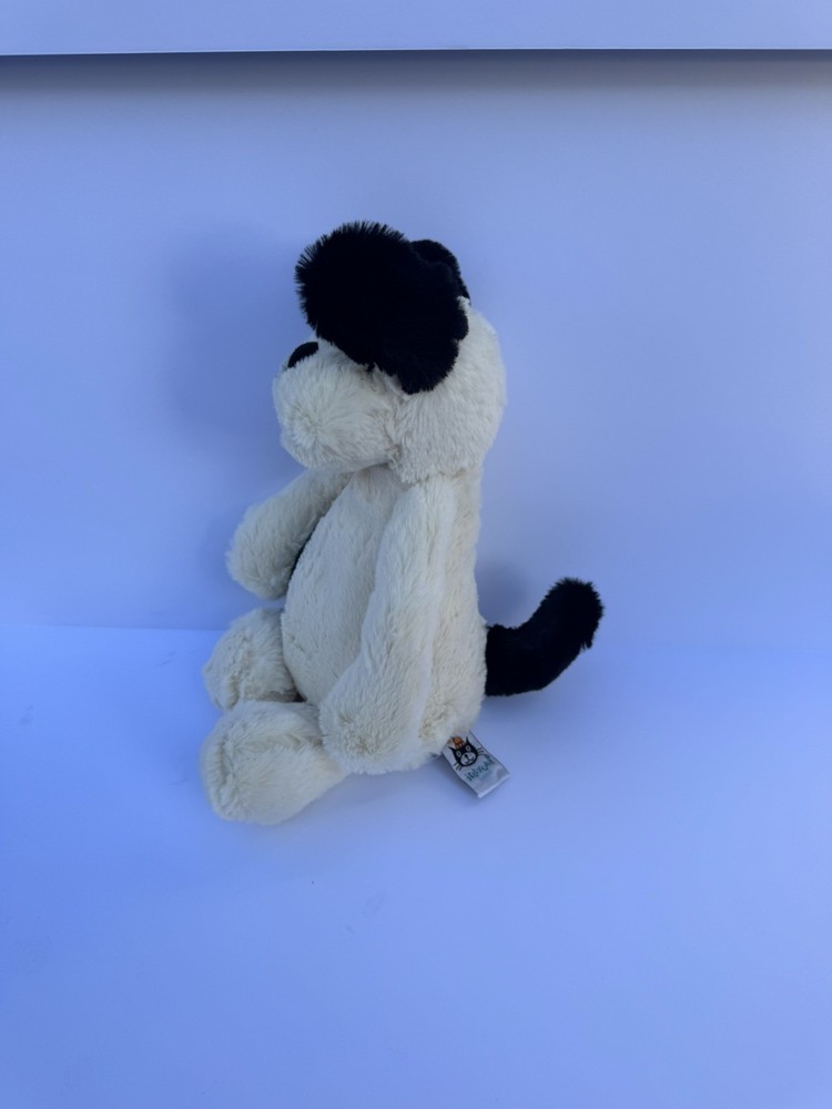 The Jellycat Medium Original Bashful Black and Cream Puppy is a 12-inch stuffed animal that is perfect for cuddling and playtime. This adorable puppy features the signature Jellycat softness and quality, making it a delightful addition to any toy collection. With its cute black and cream colors and super soft feel, this puppy is sure to bring joy to both children and adults alike. This puppy is in EUC.