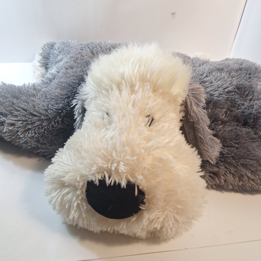 The Jellycat XL Truffles Sheep Dog Toy Pillow is a large and soft cuddly toy perfect for children of all ages. Made by Jellycat London, this gray and white stuffed animal is designed to provide comfort and companionship. With its size ranging from 24-36 inches, this plush toy is ideal for young children, teenagers, and even adults who love a good snuggle buddy. Its adorable design and soft material make it a rare and special addition to any toy collection.