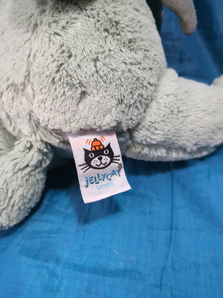 Jellycat of London Plush Sage Green Bashful Dragon Stuffed Animal Medium 12"