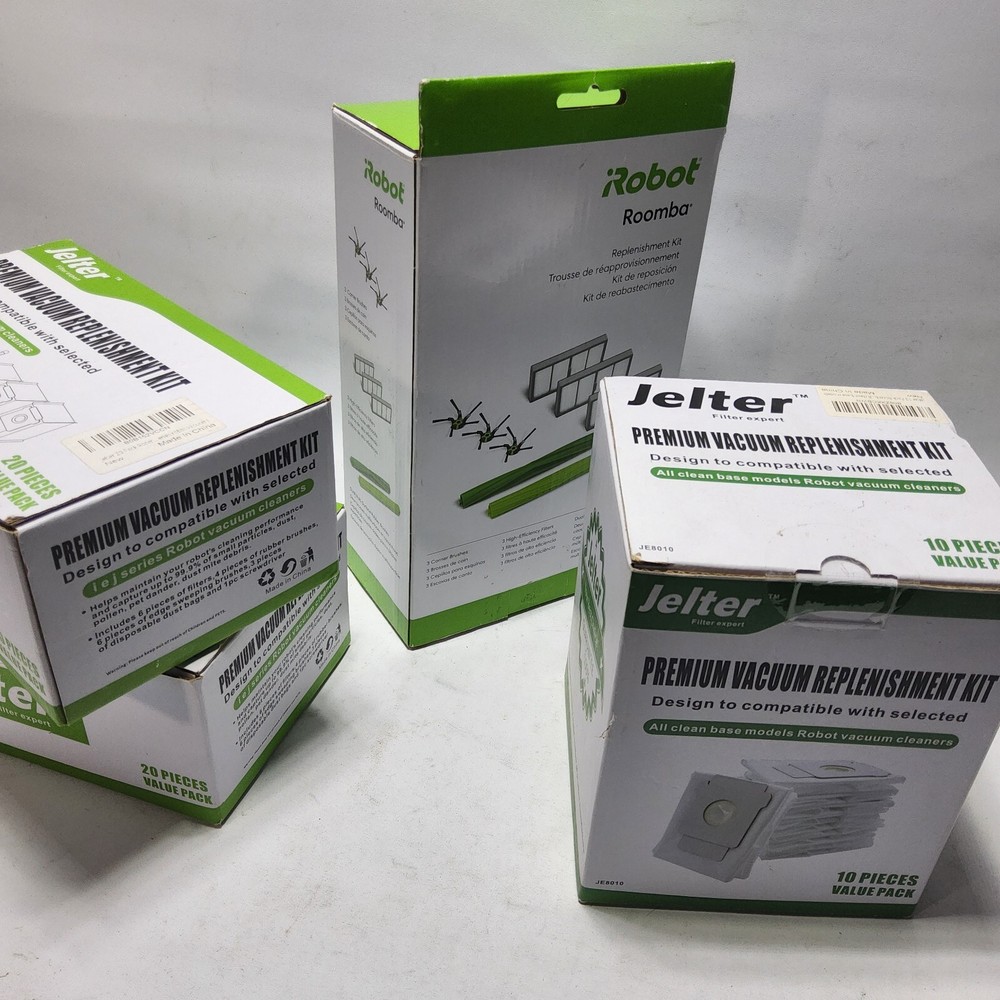 Jelter robot vacuums filters replenishment kits lot iej base series roomba Sold as a lot. See pics. New in open boxes. 1 box labeled "replenishment kit" only had 2 rectangle filters,the other has inthink,2 little square filters missing. Box of 10 filters complete. Taller box that says roomba,is full as well. Welcome to Treasure Suite . A cozy little corner of the internet for a wide array of household items! These household items are curated from diverse sources including yard sales, thrift stores, closeout stores, flea markets, and estate sales. My sourcing strategy not only allows me to offer an eclectic mix of products, but also ensures that our prices remain highly competitive. ***What is Offered*** *Home decor* Discover a variety of discounted home decor items that can add charm and functionality to any living space. From vintage finds and antique treasures to contemporary pieces, there is something to suit every taste and style. *Kitchenware and appliances* This section features everything from cookware and utensils to small appliances and gadgets. You'll find a nice selection that caters to both your culinary and aesthetic needs. *Home Improvement and DIY* For the DIY enthusiasts, what is offered is a range of home improvement tools and supplies. From power tools and hardware to paint and crafting materials. Perfect for those looking to tackle projects around the house. *Cleaning Supplies and Organization* Keep your home spotless and organized with a selection of cleaning supplies and storage solutions. Offered is a variety of products that help you maintain a tidy and efficient living space. *** Why Shop With TreasureSuite? *** *Competitive Pricing* Thanks to my diverse sourcing methods, costs can be kept low and pass the savings on to you. My pricing is designed to be budget-friendly without compromising on quality or selection. *Unique and Diverse Inventory* Inventory is constantly changing as i acquire new items from different sources. This ensures a unique shopping experience each time you visit. *Sustainability* By sourcing items from yard sales, thrift stores, and other second-hand markets, what is contributed is a more sustainable shopping model. You can feel good about giving pre-loved and opened but new items a home and reducing waste. *Quality and Condition* I take pride in the quality of products acquired. Each item is carefully inspected before being listed, ensuring that you receive items in excellent condition. *30 day money back guarantee. Buyer pays for return shipping. Explore my store and discover the charm of finding unique household items at unbeatable prices. Thank you for choosing Treasure Suite for your home needs!