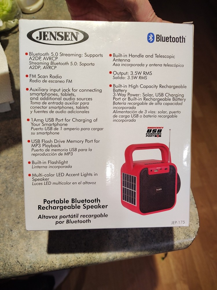 Jensen Model JEP-175 Portable Bluetooth Rechargeable Speaker New
