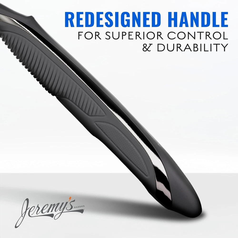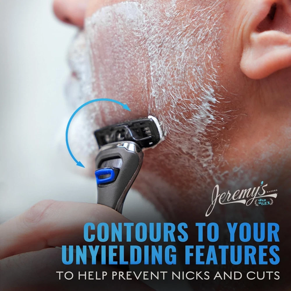 About this item JEREMY'S RAZORS FOR MEN: You’re an American man with high standards & strong convictions. You embrace discomfort fighting for your values, but not while shaving. Get the best shave of your life! COMPLETE SHAVING KIT FOR MEN: Includes 1 razor handle and 1 three-blade razor cartridge. It's your ultimate men's shaving tool for a close shave every time. GET THE BEST SHAVE: Comfortably conquer hair & stubble with our new stainless steel coated blades. Get an incredibly smooth and ultra-close bathroom + shower shave on your face, head and body. PROTECT YOUR SKIN: Jeremy's advanced lubricating strip is infused with argan oil and aloe to continuously moisturize your skin as you shave. Perfect for regular and sensitive skin across the body. LOOK SHARP with advanced razor designs: The pivoting head contours your unyielding, handsome features to prevent nicks and cuts. The ergonomic handle allows for superior control and durability.