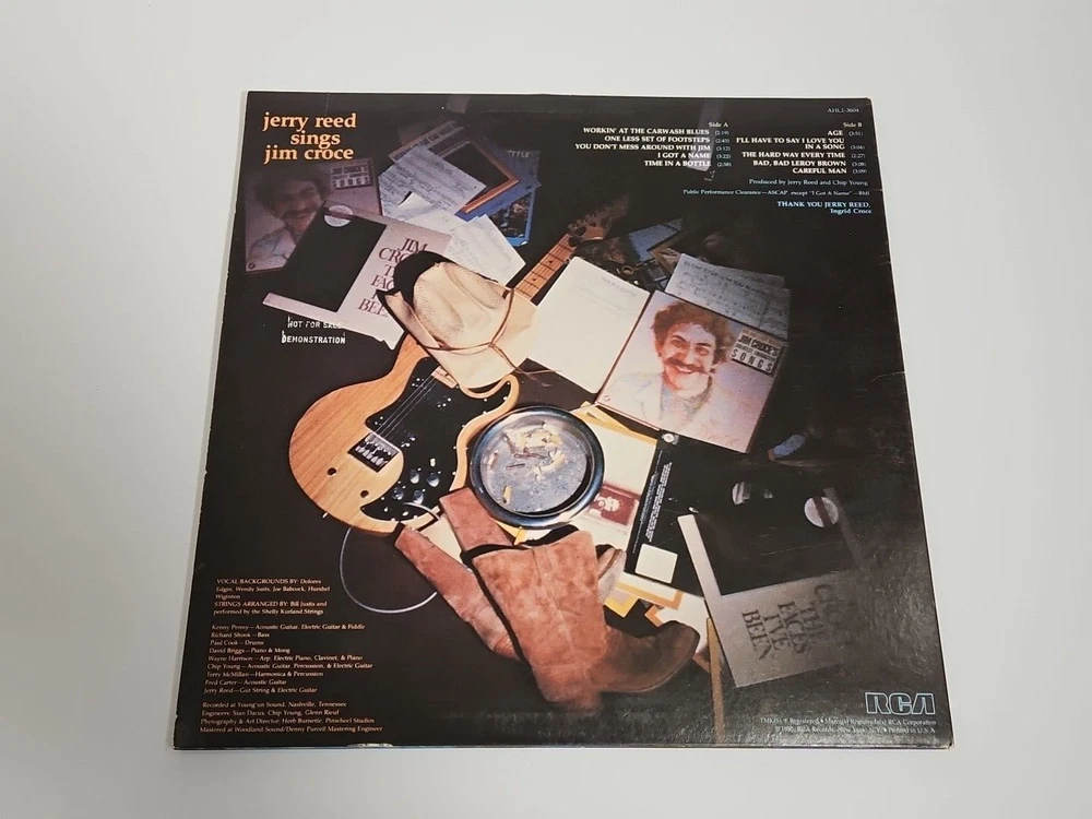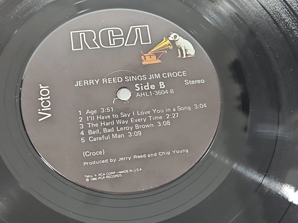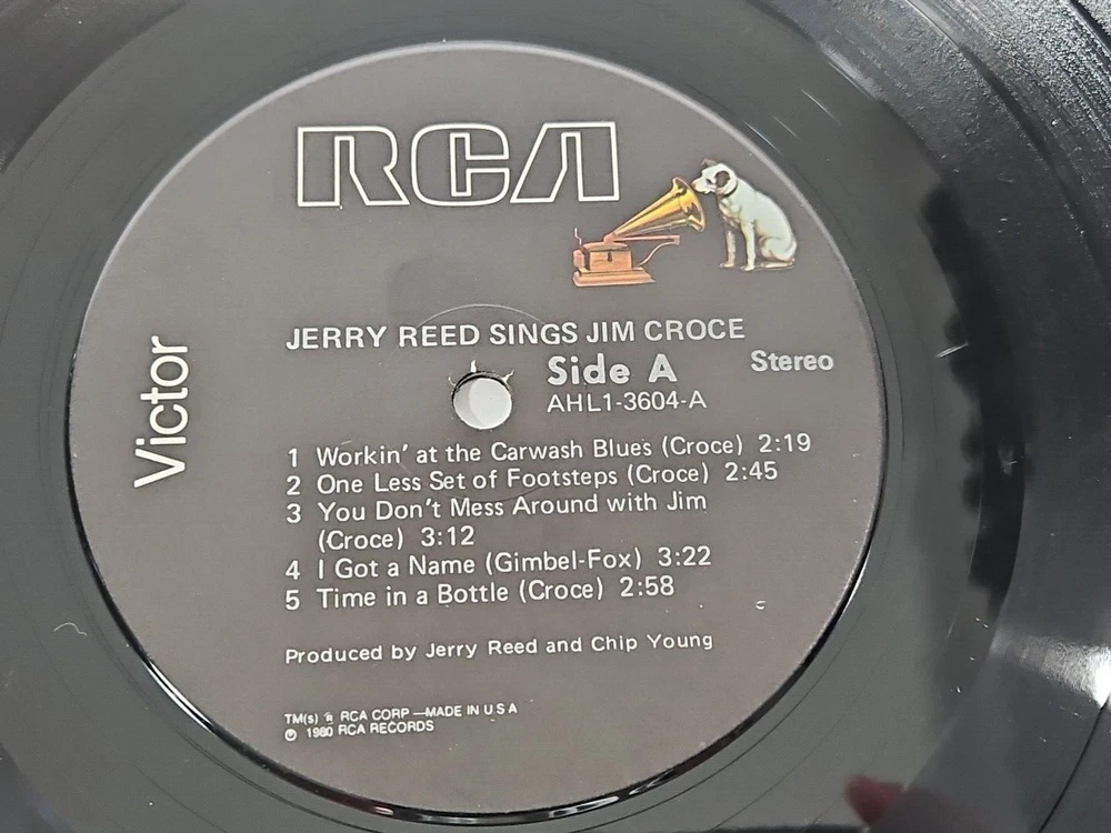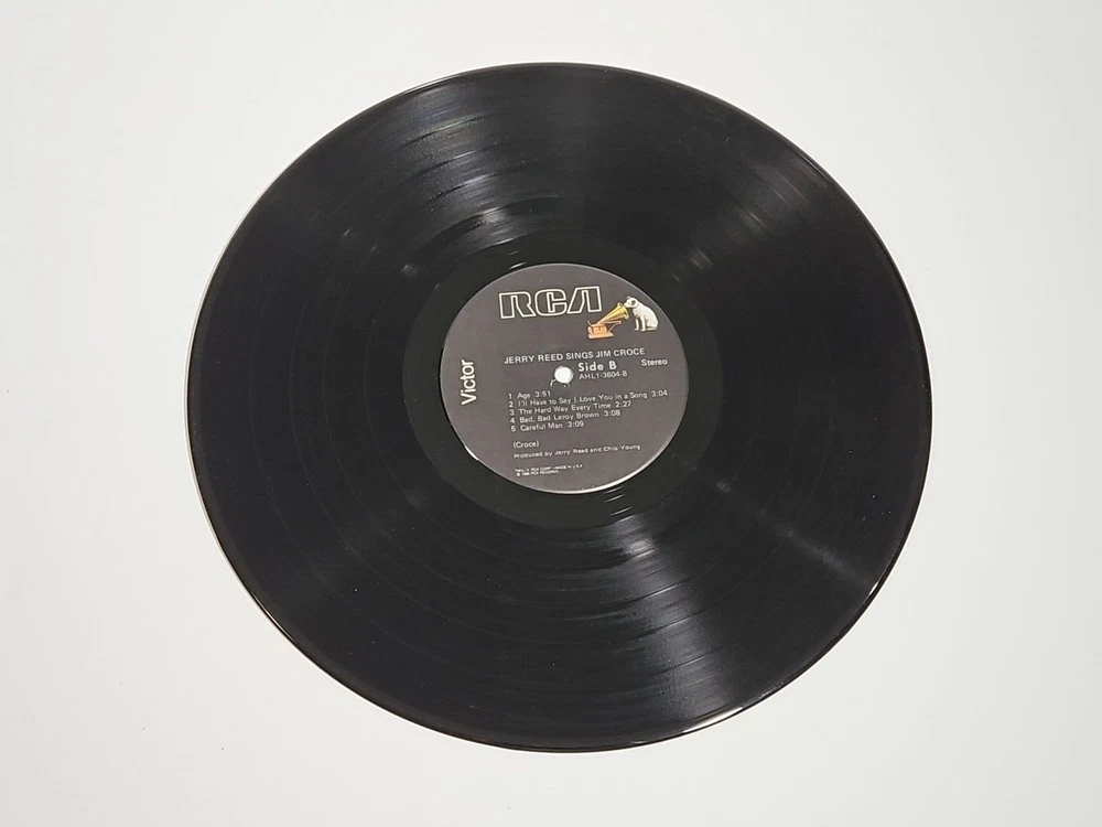 This vinyl LP, titled "Jerry Reed Sings Jim Croce," was released in 1980 on RCA Victor with catalog number AHL1-3604. The vinyl disc is graded Excellent (EX) as is the LP Cover sleeve. Please see the detailed photos included in this listing. The LP is a must-have for fans of Jerry Reed and country music and of fans of Jim Croce's music and songs. I played both sides of this vintage LP completely without issues. This LP plays flawlessly and sounds great. Items are carefully inspected to the best of my ability. I store my items in a pet and smoke free home. I ship quickly and welcome all questions and offers. If you would like to order more than one item, send me an offer so I can do combined shipping & save.