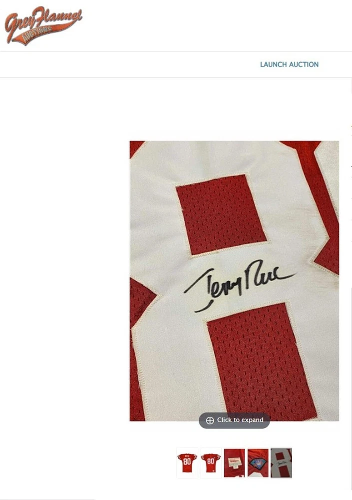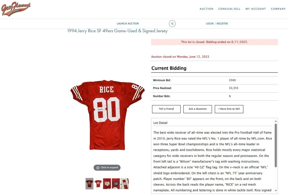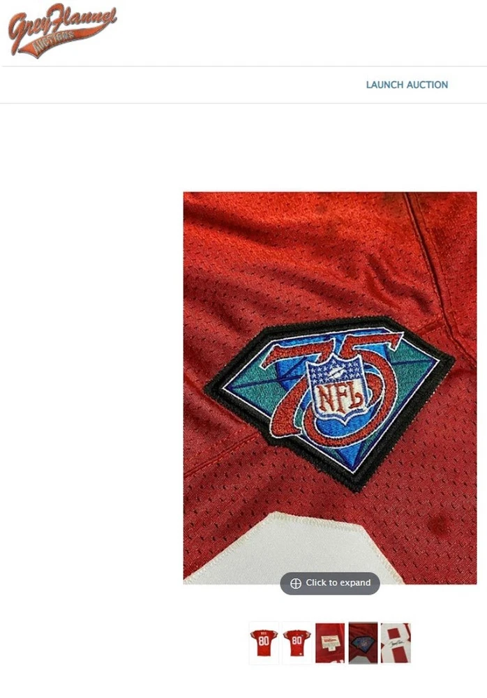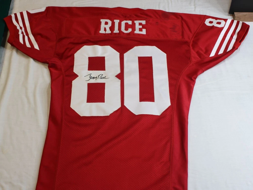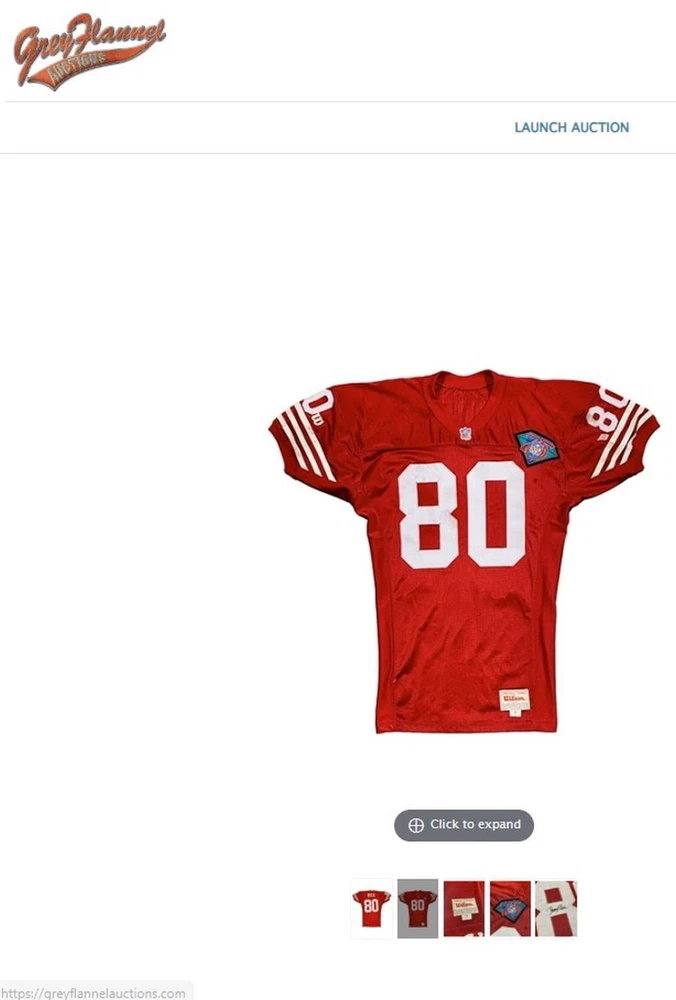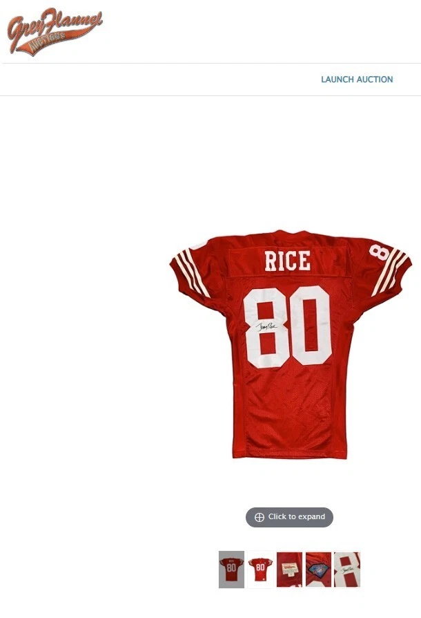 Welcome to Heritage Coins & Collectables Offered today is this Jerry Rice San Francisco 49ers Game Worn & Signed Jersey, JSA & Grey Flannel COA “The jersey offered in this sale was certified and sold by Grey Flannel in the Auction #60 Lot 692 in June of 2023 sale. The item was lost in transit and the insurance company recovered the item after the loss claim had been paid via OS&D. "Below is the Lot Description from Grey Flannel". The JSA cert was lost and not recovered but we are working with JSA to get a replacement certificate. SEE Full Description below! The 1st images are taken by us and the others are screen shots from the Grey Flannel Auction. "Below is the Lot Description from Grey Flannel" The best wide receiver of all-time was elected into the Pro Football Hall of Fame in 2010. Jerry Rice was rated the NFL’s No. 1 player of all-time by NFL.com. Rice won three Super Bowl championships and is the NFL's all-time leader in receptions, yards and touchdowns. Rice holds mostly every major statistical category for wide receivers in both the regular season and postseason. On the front left tail is a “Wilson” manufacturer’s tag with washing instructions. Attached adjacent is a size “46 GZ” flag tag. On the v-neck is an official “NFL” shield logo embroidered. On the left chest is an “NFL 75” year anniversary patch. Player number “80” appears on the front, on the back and on both sleeves. Across the back reads the player name, “RICE” on a red mesh nameplate. All numbering and lettering is done in white tackle twill. Rice signed the back of the jersey in black marker and in our opinion rates a strong 8. We have been unable to match the placement of the 75th patch on the jersey. It is possible it was worn prior to the patch being added and non-football related wear is present on the shoulders. This jersey is properly tagged, was presented to us as game-used and in our opinion shows appropriate use. Accompanied by an ALOA from JSA. NOTE: The JSA ALOA “Authentication Letter of Authenticity” was lost in transit and not recovered, we are actively working with JSA to get a duplicate ALOA. Also below is the Grey Flannel past Auction IP web link. https://greyflannelauctions.com/1994_Jerry_Rice_SF_49ers_Game_Used___Signed_Jersey-LOT50753.aspx IMAGES: All images are of the actual coin or item listed. All images are not enhanced or manipulated, and we provide oversized images as well. Should you have questions on a given item such as "what variety is this coin?" just ask! Return Policy: We offer a no questions asked, 30-day return policy on most sales. We feel 30 days is more than enough time to view in hand any collectable item and determine if it fits into your collection. Lot, bulk roll, or bagged coin sales, and Supplies are sold as imaged with no return. Shipping: Items won that are paid by 11:30 AM EST Mon-Fri are shipped the same day most of the time, and we strive to ship everything within 24 hours of payment. Combined shipping: We do combined shipping on most multi-unit sales won or bought within 24 hours. Please contact us in regard to what shipping discounts may be applicable, as weight, size and overall value come into play. Affiliations: PCGS, NGC, CAC, SGC Authorized Dealer, Life Member-Society of Silver Dollar Collectors (SSDC), CONECA, ANA, FUN