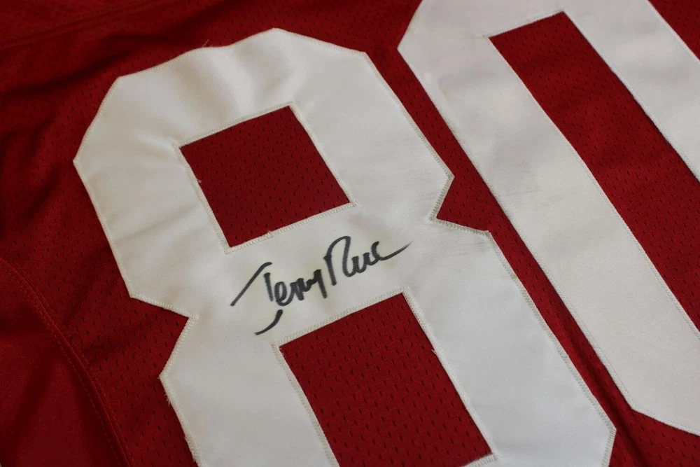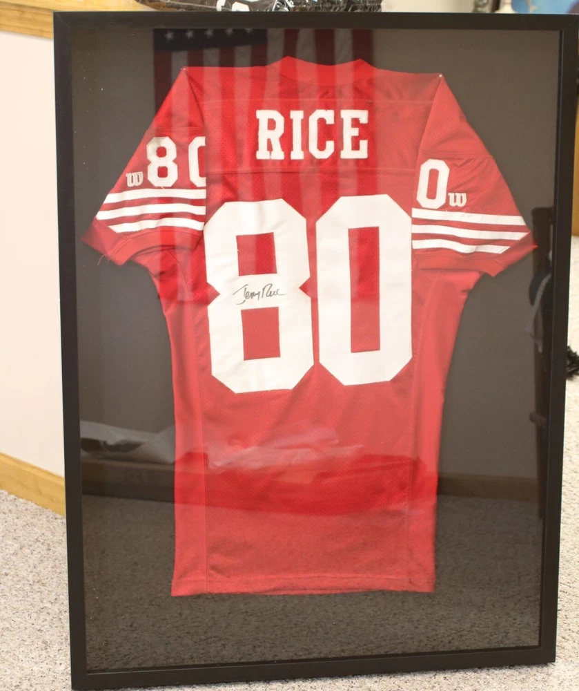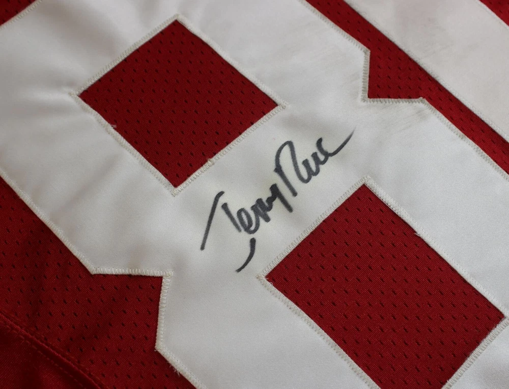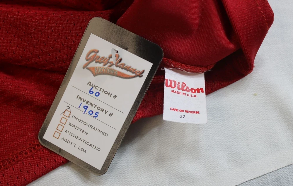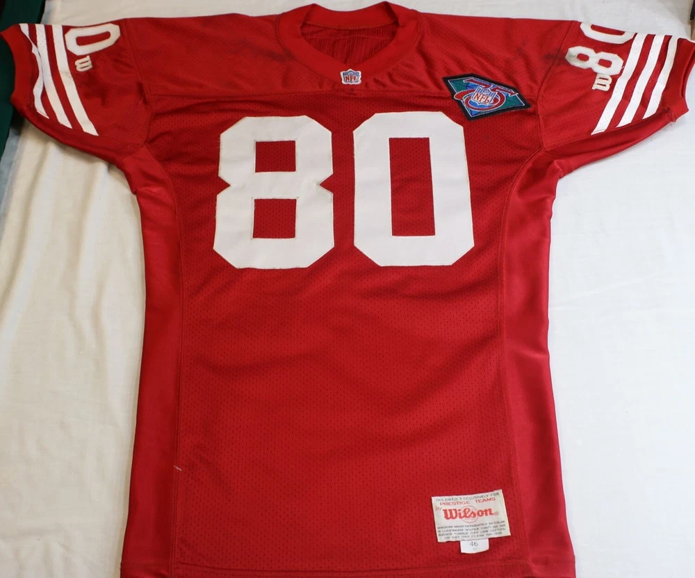Welcome to Heritage Coins & Collectables Offered today is this Jerry Rice San Francisco 49ers Game Worn & Signed Jersey, JSA & Grey Flannel COA “The jersey offered in this sale was certified and sold by Grey Flannel in the Auction #60 Lot 692 in June of 2023 sale. The item was lost in transit and the insurance company recovered the item after the loss claim had been paid via OS&D. "Below is the Lot Description from Grey Flannel". The JSA cert was lost and not recovered but we are working with JSA to get a replacement certificate. SEE Full Description below! The 1st images are taken by us and the others are screen shots from the Grey Flannel Auction. "Below is the Lot Description from Grey Flannel" The best wide receiver of all-time was elected into the Pro Football Hall of Fame in 2010. Jerry Rice was rated the NFL’s No. 1 player of all-time by NFL.com. Rice won three Super Bowl championships and is the NFL's all-time leader in receptions, yards and touchdowns. Rice holds mostly every major statistical category for wide receivers in both the regular season and postseason. On the front left tail is a “Wilson” manufacturer’s tag with washing instructions. Attached adjacent is a size “46 GZ” flag tag. On the v-neck is an official “NFL” shield logo embroidered. On the left chest is an “NFL 75” year anniversary patch. Player number “80” appears on the front, on the back and on both sleeves. Across the back reads the player name, “RICE” on a red mesh nameplate. All numbering and lettering is done in white tackle twill. Rice signed the back of the jersey in black marker and in our opinion rates a strong 8. We have been unable to match the placement of the 75th patch on the jersey. It is possible it was worn prior to the patch being added and non-football related wear is present on the shoulders. This jersey is properly tagged, was presented to us as game-used and in our opinion shows appropriate use. Accompanied by an ALOA from JSA. NOTE: The JSA ALOA “Authentication Letter of Authenticity” was lost in transit and not recovered, we are actively working with JSA to get a duplicate ALOA. Also below is the Grey Flannel past Auction IP web link. https://greyflannelauctions.com/1994_Jerry_Rice_SF_49ers_Game_Used___Signed_Jersey-LOT50753.aspx IMAGES: All images are of the actual coin or item listed. All images are not enhanced or manipulated, and we provide oversized images as well. Should you have questions on a given item such as "what variety is this coin?" just ask! Return Policy: We offer a no questions asked, 30-day return policy on most sales. We feel 30 days is more than enough time to view in hand any collectable item and determine if it fits into your collection. Lot, bulk roll, or bagged coin sales, and Supplies are sold as imaged with no return. Shipping: Items won that are paid by 11:30 AM EST Mon-Fri are shipped the same day most of the time, and we strive to ship everything within 24 hours of payment. Combined shipping: We do combined shipping on most multi-unit sales won or bought within 24 hours. Please contact us in regard to what shipping discounts may be applicable, as weight, size and overall value come into play. Affiliations: PCGS, NGC, CAC, SGC Authorized Dealer, Life Member-Society of Silver Dollar Collectors (SSDC), CONECA, ANA, FUN