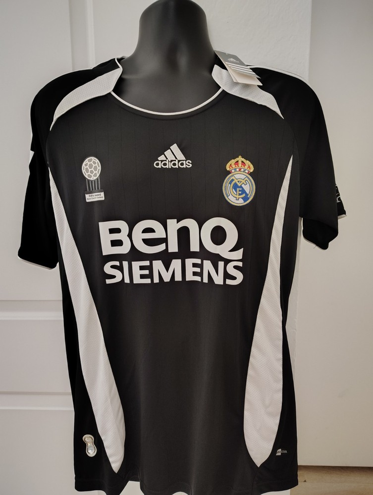 The product is a men's XL black jersey David Beckham in his Real Madrid third kit for the 2006-2007 season. Made for the sport of soccer, this jersey is a must-have for any fan of the club or Becks.