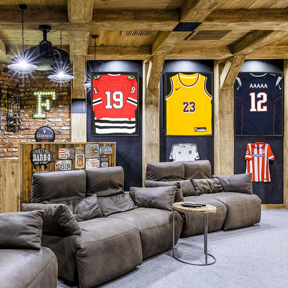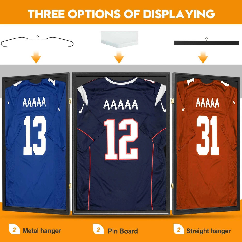 Jersey Display Case Frame Shadow Rack Box Exquisite Lockable with Hanger Wood