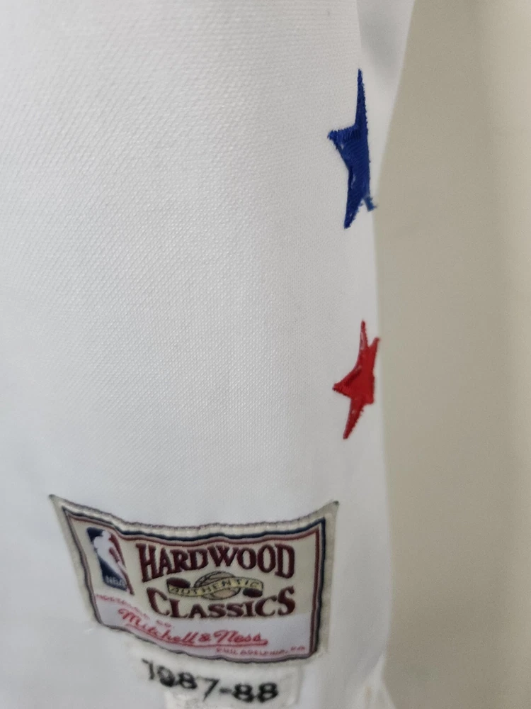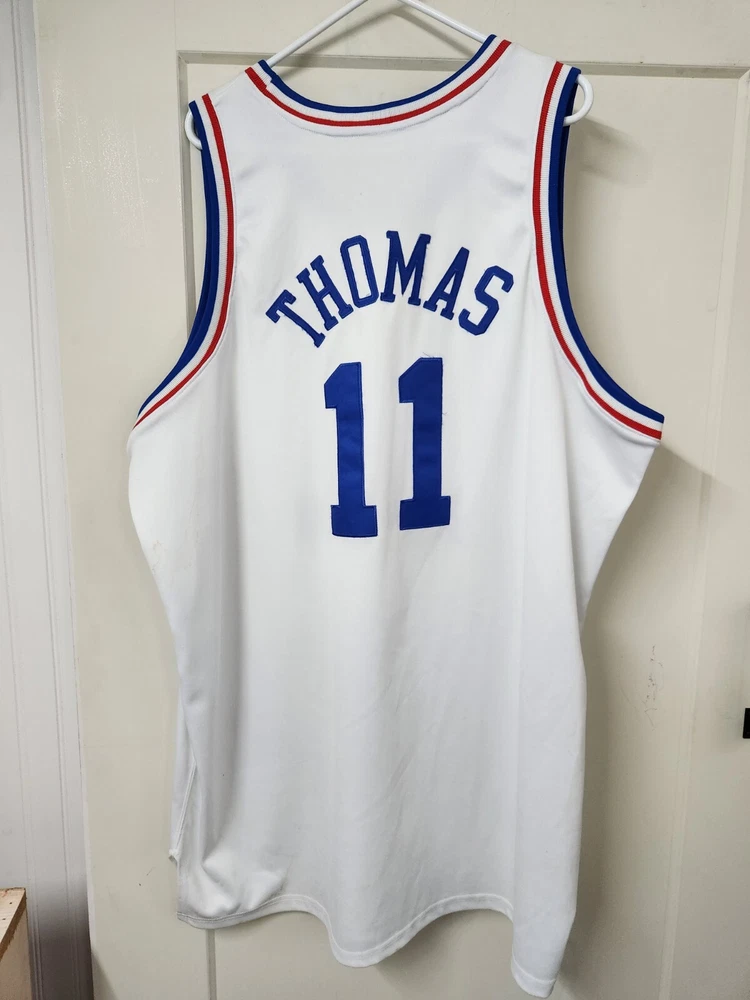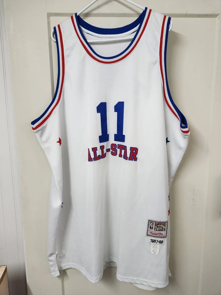 Show your love for the Detroit Pistons with this officially licensed Mitchell & Ness ISIAH THOMAS #11 jersey. This size 58 jersey is perfect for any basketball fan. The white color and Hardwood Classics collection make it a great addition to any wardrobe. Featuring the National Basketball Association (NBA) player and team name, this jersey is perfect for regular season games or everyday wear. Made in the United States, this high-quality product is a must-have for any true fan. Get your hands on this Mitchell & Ness ISIAH THOMAS #11 jersey and show your support for the Detroit Pistons today!