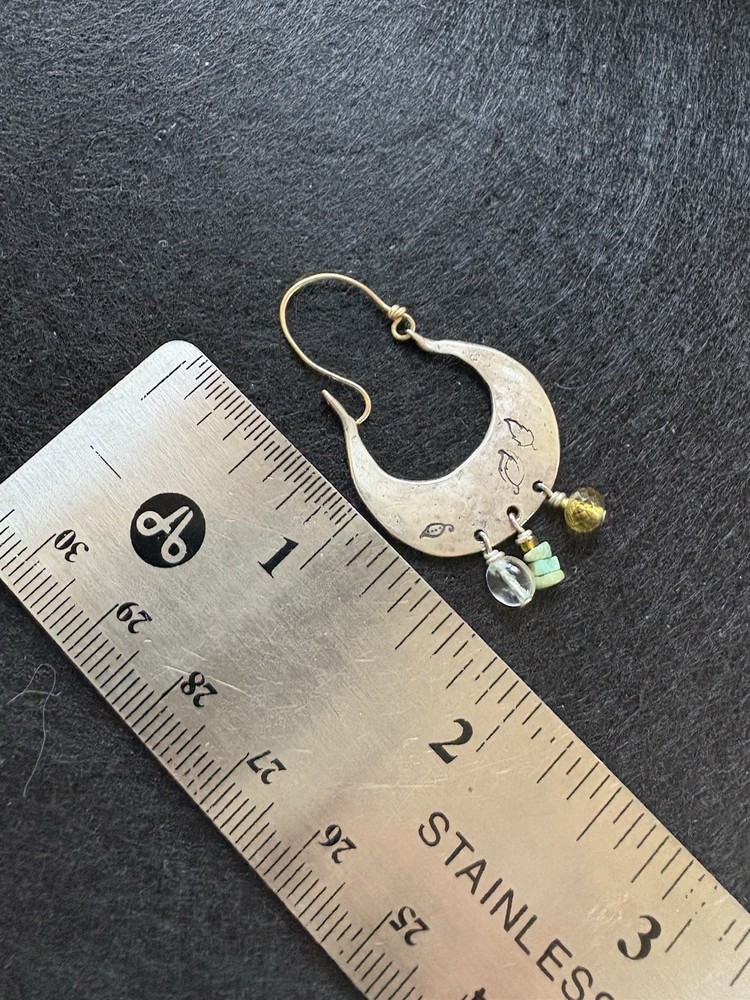 $ 12.08ON SALE * HANDCRAFTED LG. EGYPTIAN COPPER METAL-ART & TURQUOISE DROP EARRINGS