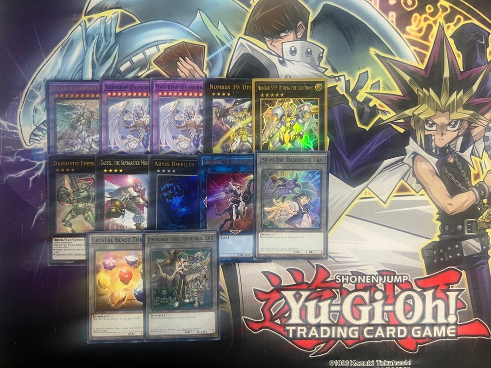 Hello! You are purchasing the deck list below, the cards will be English, real, and near mint to light play condition at worst. All decks are built with the lowest rarities for cards in mind to keep the price of the deck low and affordable for all duelists! Some cards may be in speed duel printing if this is the cheapest available copy of the card, but do not worry these are real cards and legal for tournament use! Purchase with confidence and safety! As an added bonus one pack of card sleeves will be included with your deck! Thanks again and good luck dueling! Now here's the decklist; Monsters: 1| Rainbow Dark Dragon 1| Rainbow Dragon 1| Crystal Beast Rainbow Dragon 1| Gravi-Crush Dragon 1| Magna-Slash Dragon 1| Crystal Keeper 1| Crystal Master 2| Crystal Cobalt Eagle 2| Crystal Beast Topaz Tiger 2| Crystal Beast Emerald Turtoise 2| Crystal Beast Amber Mammoth 2| Crystal Beast Ruby Carbuncle 2| Crystal Beast Amethyst Cat 3| Crystal Beast Sapphire Pegasus Spells; 1| Rainbow Bridge of the Heart 1| Awakening of the Crystal Ultimates 1| Crystal Aegis 1| Rainbow Refraction 1| Crystal Beacon 1| Crystal Blessing 1| Crystal Release 1| Crystal Abundance 1| Advanced Dark 1| Rainbow Bridge 1| Crystal Bond 2| Crystal Tree 3| Crystal Promise 3| Rare Value 3| Ancient City - Rainbow Ruins Traps: 1| Rainbow Gravity 1| Rainbow Path 1| Last Resort 1| Crystal Brilliance 1| Ultimate Crystal Magic 1| Crystal Miracle 1| Crystal Boon 1| Crystal Pair 1| Counter Gem 1| Crystal Conclave 1| Rainbow Bridge of Salvation 2| Crystal Raigeki Extra Deck: 1| Gaia Saber, The Lightning Shadow 1| Abyss Dweller 1| Castel, The Skyblaster Musketeer 1| Daigusto Emeral 1| Number S39: Utopia The Lightning 1| Number 39: Utopia 1| Ultimate Crystal Rainbow Dragon Overdrive 2| Rainbow Overdragon 3| Free Tokens featuring Jesse and his Crystal Beast friends!