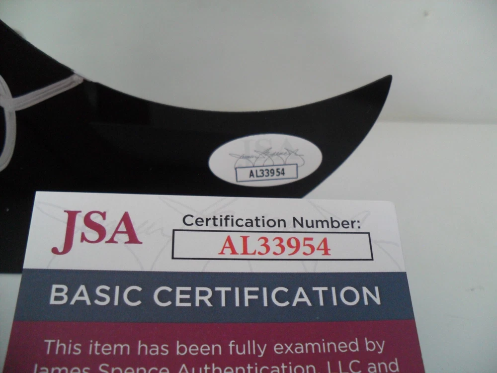 This is a JSA Certified Authentic Jesse James Decker Autographed Pickguard Scratchplate. She signed this in permanent BRIGHT BOLD SILVER paint pen. NOTE: Because this is a high gloss black pickguard you may notice reflections in the photos that appear to be blemishes. This pickguard is BRAND NEW and in excellent condition without any blemishes whatsoever. This has been in storage since it was autographed and has not been displayed or exposed to artificial or natural light...it is very nice...bright bold silver paint pen! The Pickguard Measures 7" X 4". The autograph is certified authentic and comes with a Certificate of Authenticity and matching alpha-numeric tamper evident hologram label placed on the pickguard from JSA/James Spence Authentication (JSA - AL33954 ). From NON-SMOKING home.