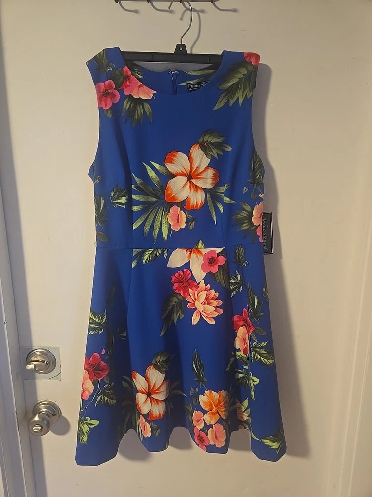 Jessica Howard PETITE SCUBA DRESS Blue Floral New W/ $89 HUGE HOLIDAY SALE SZ 10