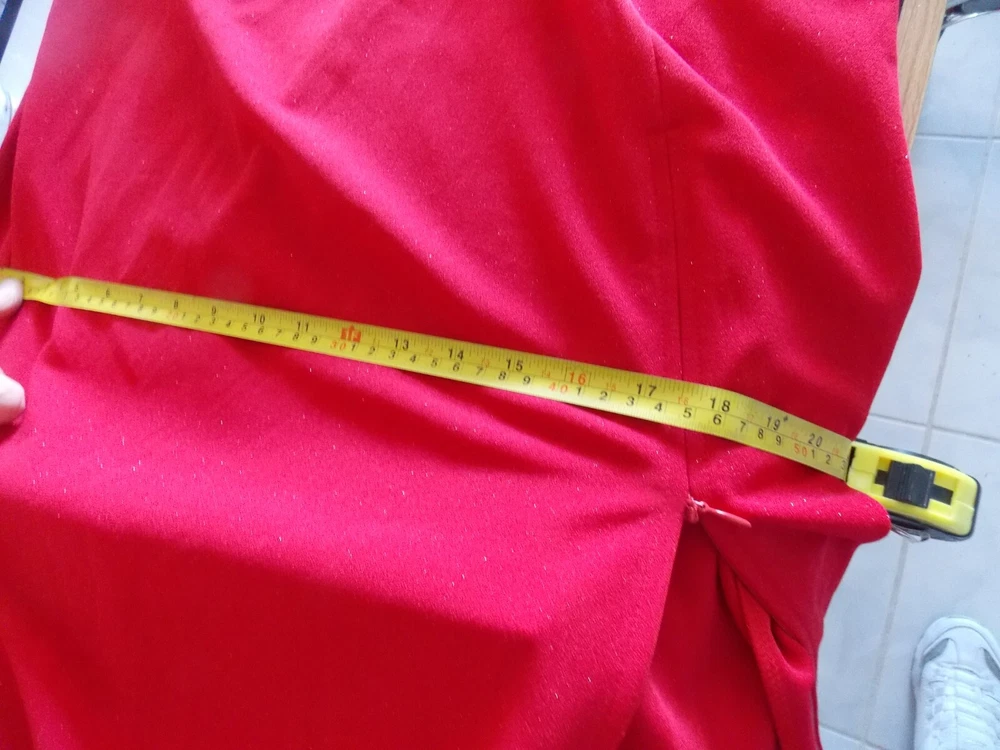 NEW Gown Great for wedding , Party. Bust 34 inches Hip 42 inches Long 58 inches Beautiful v neck & open back red sparkle gown 95% Poly 5% Spandex so there is some "give" Hand wash Gown is MISLABELED 3X NOT 3X Zoom in on pictures for measurements about a Medium D3112C - RED- 3X tag reads No returns No refunds Ship USA only shipped when your payment clears