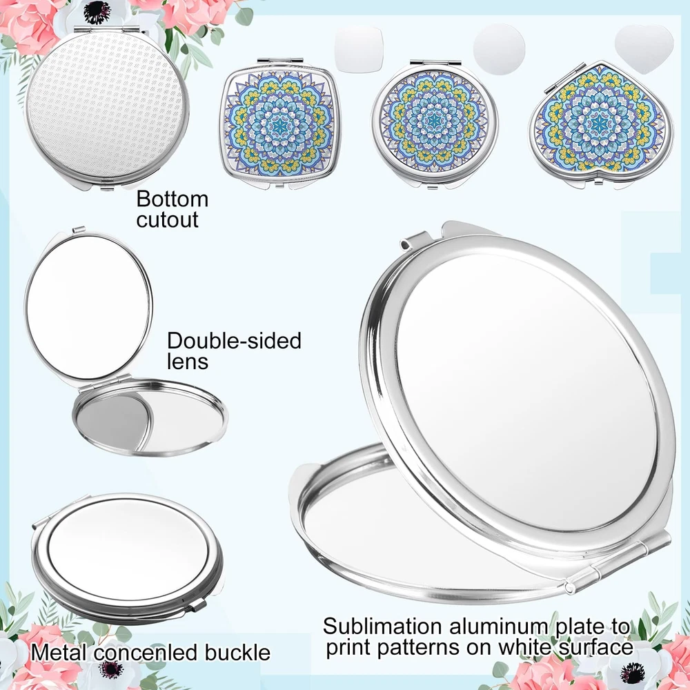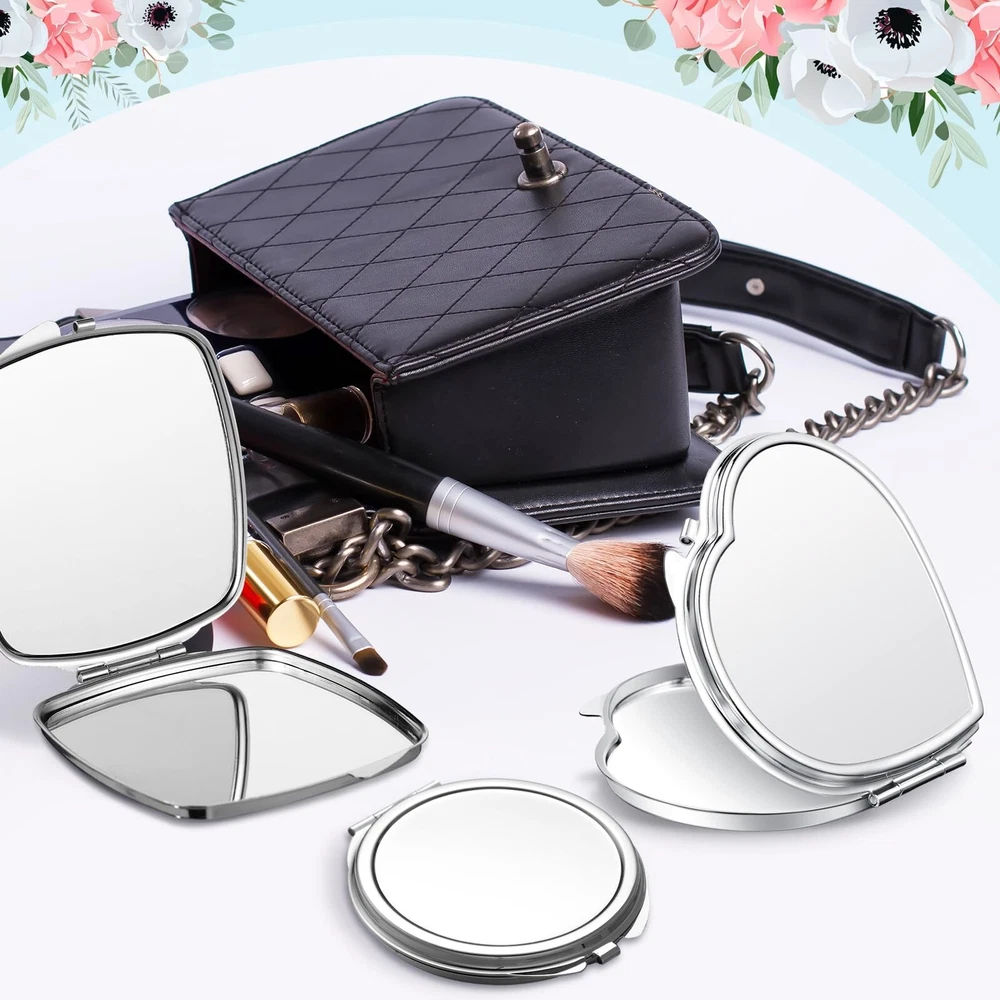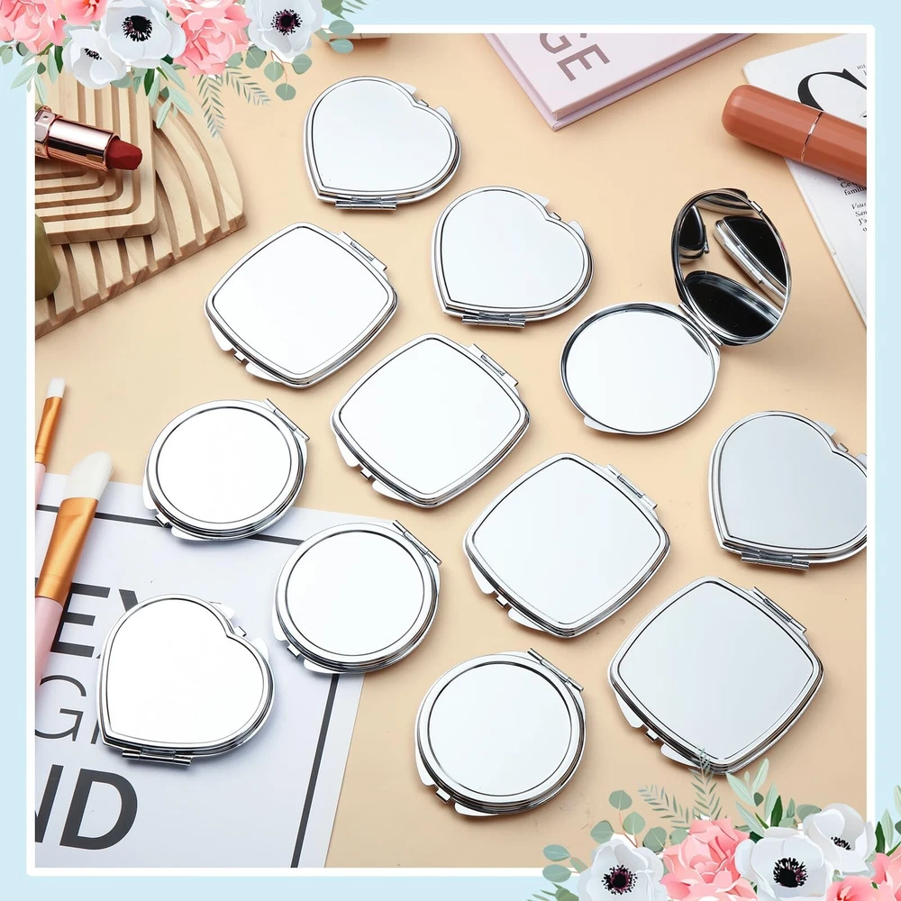 Jetec 12 Pcs Sublimation Blanks Small Compact Mirror Bulk Folding Pocket Makeup Mirror Double Sided Handheld Compact Mirror with Magnification for Purse Women Gift Travel Product Details Item Package Quantity: 12 Brand: Jetec MPN: GR-Jetec-212903 UPC: Does not apply EAN: Does not apply Brand: Jetec Room Type: anywhere Shape: Round Product Dimensions: 1.97"L x 1.97"W Frame Material: Aluminum Brand: Jetec Room Type: anywhere Shape: Round Product Dimensions: 1.97"L x 1.97"W Frame Material: Aluminum Style: Compact Mounting Type: Dresser Mount Special Feature: Heat Transfer Color: Colorful Theme: heart Specific Uses For Product: [Multiple] Home, traveling, hair salons, powder rooms, meetings, holiday parties Number of Items: 12 Material: aluminum, stainless steel metal, glass Assembly Required: No Manufacturer: Jetec Item Weight: 12 ounces Country of Origin: China Date First Available: May 8, 2024 Sublimation Blanks Compact Mirrors: the sublimation compact mirrors are made of aluminum, stainless steel metal and glass, each sublimation blanks pocket mirror has an aluminum sheet on the surface, which can support you to heat transfer different patterns and pictures on it; You can print the pattern you like, then sublimate the pattern on the surface of the aluminum plate, you can get colorful and delicate crafts Magnification Function: the small magnifying mirror adopts double sided glasses; One side has 2 times magnification, which can make it easier to draw eyeliner and apply mascara; The other mirror is the real view, which can be clear for you to check the overall facial state, and help you better participate in parties, festivals, and makeup and so on Suitable size: the sublimation compact mirror blanks have 2 shapes, round shape is approx. 5 x 5 x 0.8 cm/ 1.97 x 1.97 x 0.31 inches and heart shape is approx. 6.5 x 7 x 0.8 cm/ 2.56 x 2.76 x 0.31 inches, they are fit for you to put in your pocket, cosmetic cases, bags, suitcases, they will not occupy too much space Package contents: you will receive 12 pieces of sublimation travel makeup mirrors, they have heart, square and round shape, each shape has 4 pieces, sufficient quantity can meet your daily use and replacement need, you also can share with your family members and friends Extensive usage: due to the light weight and heat transfer design of the engraving DIY mirrors, they are widely applied at home, traveling, hair salons and powder rooms; Whether you are attending meetings or holiday parties, you can use them to touch up makeup or look your own outfits
