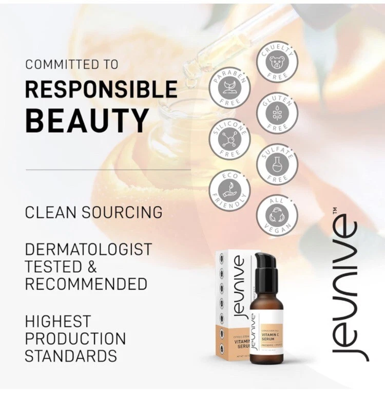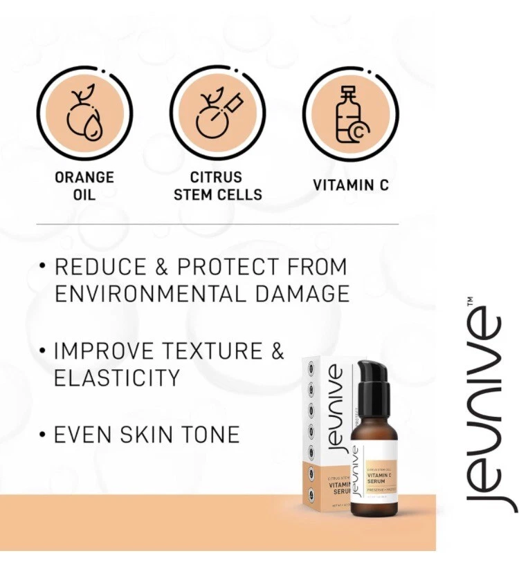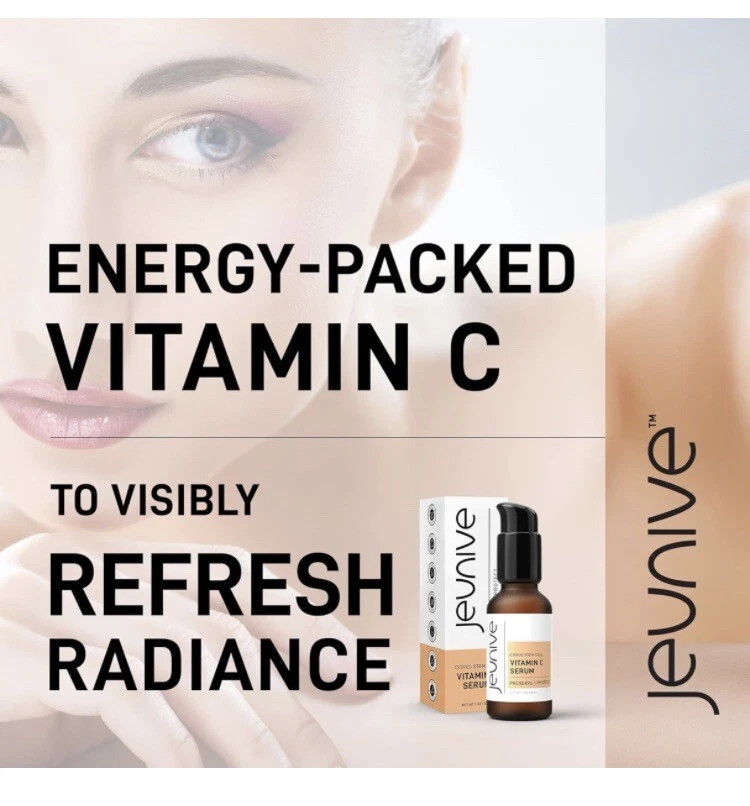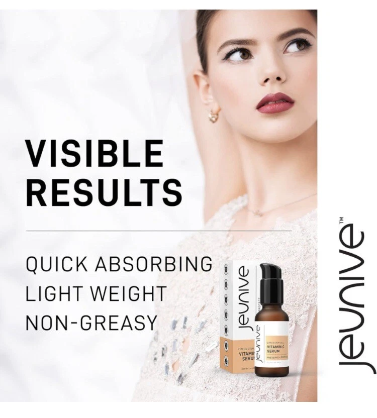 Jeunive Citrus Stem Cells Vitamin C Serum with Anti-Aging Hyaluronic Acid & Citrus Stem Cells | Day and Night Nourishment to Refresh and Even Blemishes for that Special Glow, 1 oz ***date is 11/24 hence the reduced cost