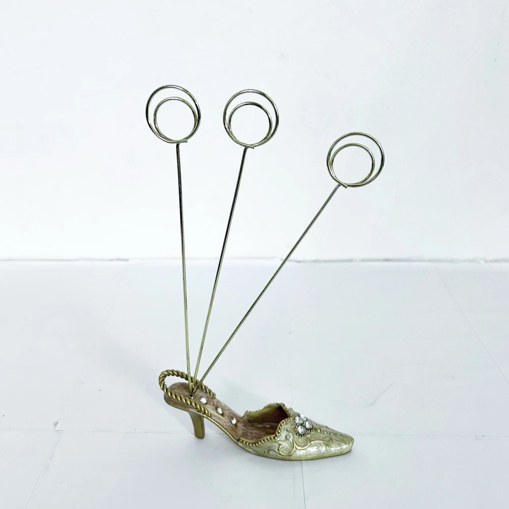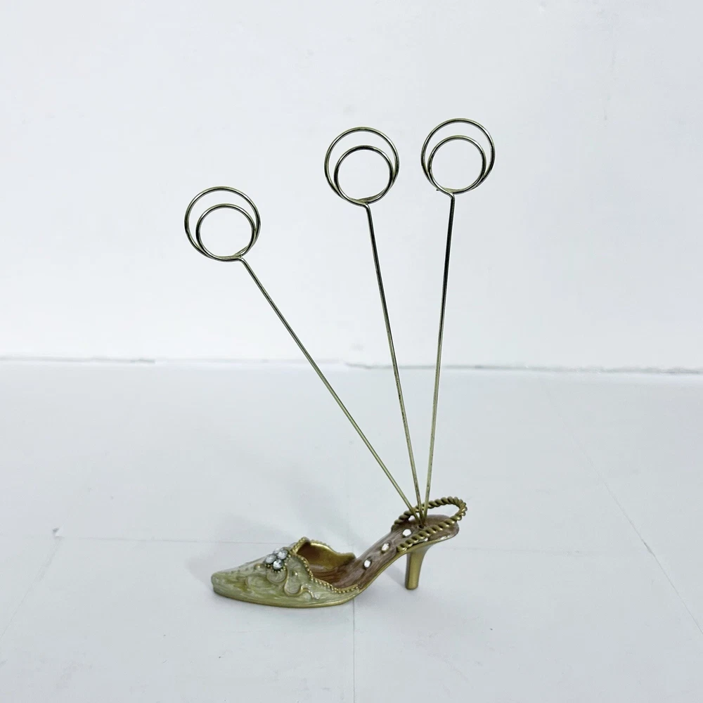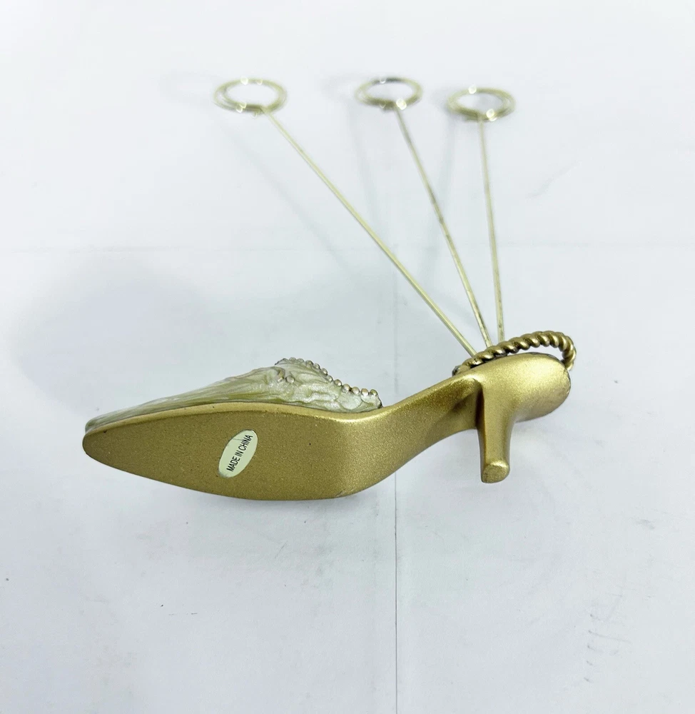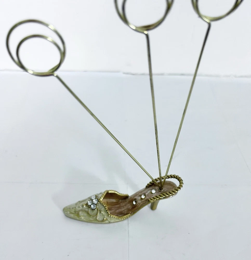 Like new gold shoe post card or business card holder. Measures 7 3/4” tall x 4 1/2” at the widest.