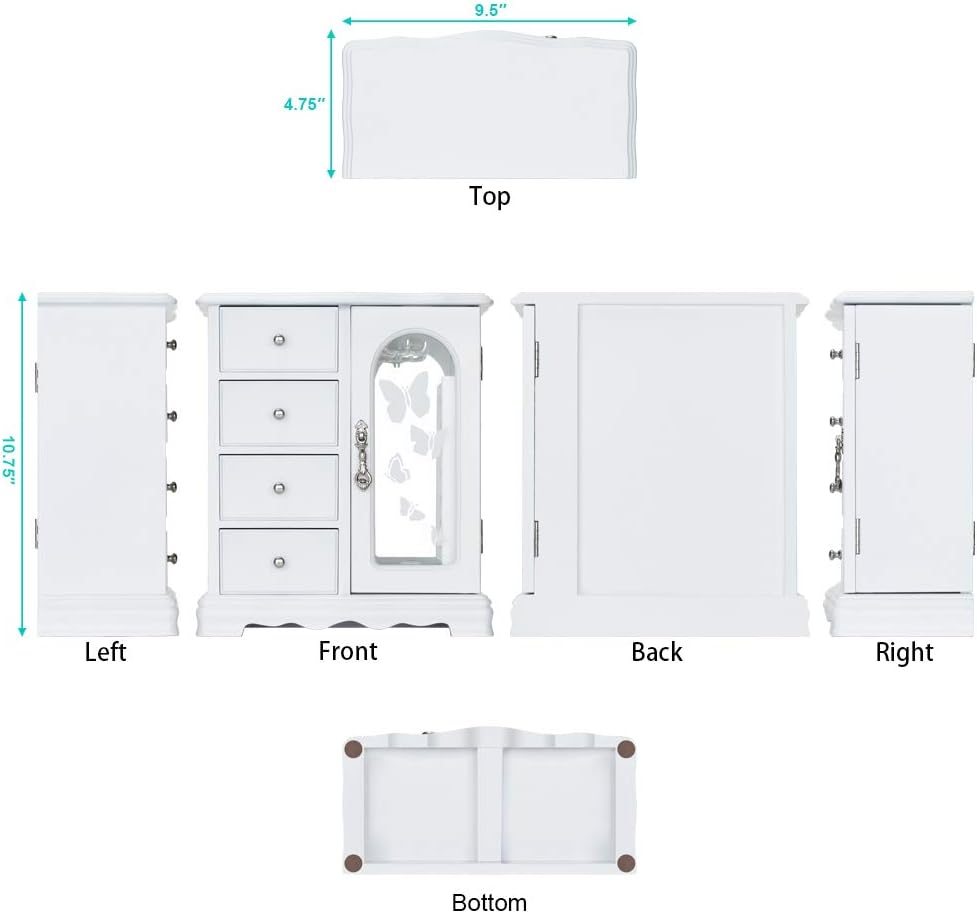 Store New Arrivals Add to Favorite View Feedback Contact Jewelry Box - Made of Solid Wood with 4 Drawers Organizer and Built-In Necklace Carousel and Large Mirror White Description Item model number RR-ZQ-0001 Style Fashion White Number of Items 1 Closure Type Not relevant for this product Country of Origin China Warranty Type Manufacturer Batteries Included? No Jewelry Storage Type Jewelry Box Batteries Required? No Number of Compartments 1 Target Audience Girls Product Dimensions 4.75"D x 9.5"W x 10.75"H Material Wood Number of Drawers 4 Finish Type Painted Item Package Quantity 1 Item Weight 4.3 pounds Finish Painted Occasion Mother's Day, Christmas, Wedding, New Year, Birthday Special Features Solid Wood Special Feature Solid Wood Part Number RR Mounting Type Freestanding Color White Is Discontinued By Manufacturer No Inner Material Velvet Shape Rectangular Recommended Uses For Product Bangle Size 9.3 x 4.75 x 10.75 in Number Of Pieces 1 💝THE ROUND RICH HIGH-GRADE JEWELRY BOX:High-end natural hardwood structure, Anti-Tarnishing velvet lining, exquisite hardware decoration, harmonious color match, highlighting taste and nobility. Packaged in a beautiful GIFT BOX, a gift that women will not refuse! 💝External design:The top and bottom adopt the unique design style of wavy shape, 4-Drawers storage, each drawer has a silver handle. It looks beautiful and easy to open or close the drawer. 360 degree fully open butterfly pattern revolving glass door, adsorption of magnets when closed. The appearance is smooth, clean, comfortable and beautiful. 💝Internal Multifunctional Design:Removable square drawer on the left, large space storage (It can store necklaces, bracelets, earrings, earpins, hairpins, watches, rings and other jewellery accessories). The right side is equipped with stereo lenses, making it easier to choose jewelry to match your own clothes; The top is equipped with necklace carousel horse, which can hang a variety of jewelry; and a multi-layer velvet ring storage device. 💝Size:Jewellery box 9.5" x 4.75" x 10.75" (L*W*H); Drawer Internal Space 3.2" x 3.2"x 1.8" (L*W*H); Mirror Size: 3.5" x 9.25". 💝This elaborate jewelry box will protect all your accessories from scratches and offers a clean storage environment for jewelry. Product Description RR ROUND RICH DESIGN High-end and fashionable wooden jewelry boxes Cabinet three-dimensional design, Selected materials and fine workmanship create a fashionable look adding decor to your home. Wedding gifts, birthday gifts, this is your best choice! Environmental-Protection material, add elegance to this jewlery case, durable. Moisture and corrosion resistant. Velvet liner is moisture and corrosion resistant and offers a clean storage environment for jewelry. Exquisite and removable storage drawers. 8-claws Necklace hook capable of rolling and rotating freely. Classic and elegant bronze door handle Multi layer velvet ring slots ABOUT US We offer the best prices around on high quality products. Our E-store includes media such as books, movies, music and games while offering electronics, toys, sporting apparel, clothing, tools, general home, garden items and more. SHIPPING We are always working hard to ensure your package arrives as soon as possible. Please understand that some factors like weather, high postal traffic, and the performance of shipping companies are outside of our control. We offer free shipping to the lower 48 states and ship within 2 business days of payment, usually sooner. We do not accept P.O. Boxes. Please provide a physical address. For shipping outside of the continental USA, we only use eBay's Global Shipping Program.The item is shipped to KY and then sent to the rest of the world. International customers are responsible for all duties and taxes. Continue to check out in order to calculate costs for shipping the item to your country. Messages regarding eBay's Global Shipping Program MUST be directed at eBay EXCLUSIVELY. RETURNS We offer a 30-Day Return Policy on items which you are not completely satisfied with. You have the option for a full-refund or an exchange of the item. No returns are available on items shipped outside of the USA. PAYMENT We accept PayPal. CONTACT US This page content is yet to come Please ad us to your favorite seller and visit again later Thank You CUSTOMER SATISFACTION We try our very best to make sure every customer is completely satisfied. If there's a problem, message us! We're happy to help. WE ACCEPT Copyright © 2021 AutoDS. | All Rights Reserved