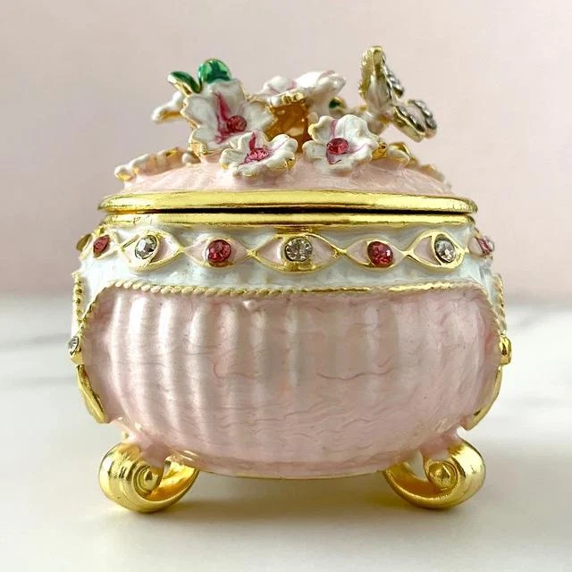 Free and fast shipping , shipping take up 1-7 Business Days 30 Day Return Accepted EASY PAYMENT via PayPal, Credit Card, PayPal Credit, Google Pay... Jewelry Box Metal Multicolor Blossom Small Enameled Romantic Carved Novelty Gift Material:Metal Inlaid Crystal Rhinestone Type:Flower Box Size:6*6.5cm(2.36*2.6inch) NW:165g Package:Golden gift box You will love it very much It is very exquisite, feels very good, has weight and is high-grade. Usage:Nice Gift Choice,lady kids favorit.Jewelry Ring Necklace storage Perfect decoration to your dresser,table, desk, shelves, or interior. Perfect for collectible and giftable. Suitable:Christmas gifts, mother's Day gifts, Valentine's Day gifts and birthday gifts, jewelry collection, home decoration, art collection and high-end gifts It is a high-quality and lasting decorative jewelry box that can not be missed Jewelry box products are hand-made, hand painted and hand inlaid, so each one is slightly different. Please understand. Payment ----------------------------------------------------------------------- 1. It is best to confirm that your personal information is correct before placing an order,and the product you purchase will be delivered on time after payment. 2. We accept multiple payment. Shipping ----------------------------------------------------------------------- 1.The product you purchase will be shipped in time. 2. We are doing our best to provide the most economic and reliable shipping service, but sometimes the Speed of shipping is out of our control,hope you cna understand ,thanks for your patience. 3. If you have any questions, please feel free to contact us and we will provide you with a satisfactory answer. We will be responsible for any damage or loss that occurs during transportation, you need to provide high-resolution image evidence to us. 4. The free Shipment for All orders via Post Air Mail and in our store, and if you need to receive faster via courier,Pls contact us . Feedback ----------------------------------------------------------------------- 1. We rely on feedback and customers' satisfaction to succeed. Therefore, your feedback is very important to us. If you are satisfied with our products and services, please leave us 5 star reviews. We will give you the best price and better service next time we order. 2.We will help you solve the problem. Please give us a chance to solve any problems. If the order is wrong, we understand that you may be dissatisfied, but we will try our best to give you satisfactory results. REVIEWS The product came very well packaged. I'm very happy. thank you for everything. Seller strongly recommended. This is great! I definitely recommend! Product looks amazing Delivery was fast. Excellent seller, great communication. I advise everyone to buy it!