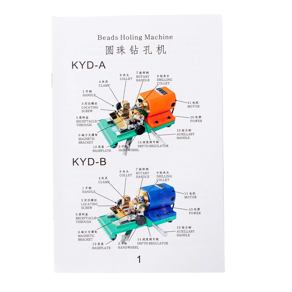 Jewelry Making Equipments Bead Polishing Tool 280W Pearl Drilling Machine 280W 110V Pearl Drilling Machine Driller Full Set Drill Holder for Jewelry Tools Description When we walk into a jewelry store, a dazzling array of jewelry often attracts our attention. At this moment, our pace slows down and our hearts are satisfied. A piece of beautiful jewelry can not be separated from powerful drilling. Our pearl drilling machine is made of fine materials and workmanship, so we can provide you with quality assurance. High efficiency and simple operation procedures can provide symmetrical and exquisite jewelry in a short time. Package Included 1 * Pearl Drilling Machine 1 * Pedal Switch 1* Bilingual Instructions(English+Chinese) 1* Tool Box All Accessories for Use Specifications Color: Black+ Yellow+Green Model: KYD Overall Material: Aluminum Material of Foot Mat: Cast Iron Material of Motor: Pure Copper Material of Collets and Drill Bit: Plastic and Copper Type: Jewelry Tools Plug Type: US Standard Voltage: 110V Power: 280W Speed: 0-15000 rpm Suitable Diameter of Jewelry: 5-35mm/0.2-1.38inch Diameter of Needles: 0.5mm/0.02inch, 0.8mm/0.03inch, 0.6mm/0.02inch, 1mm/0.04inch, 1.2mm/0.047inch Clamping Range : 0.3-4mm/0.012-0.16inch Gross Weight: 4.85kg/10.69lbs Net Weight: 4.5kg/9.9lbs Product Size: 23.5cm*10cm*11cm/9*3.9*4.3inch Package Size: 30*20*20cm/11.8*11.8*7.87inch Key Features Exquisite Material: This drilling machine is mainly made of aluminum, which is wear-resistant and corrosion-resistant , so you can use it for a long time without frequent replacement, which will save you cost to some extent. High Efficiency: The drilling machine uses a 280w pure copper motor, which consumes less energy, has a small resistance , and can rotate at 15000rpm. It can complete the drilling operation in a short time, so you don’t have to wait for a long time. Adjustable Design: The drilling machine is equipped with a stepless speed regulation switch and depth adjuster for targeted drilling according to different jewelry to provide you with more refined pearls. Multiple Sizes: The package includes 15 sets of special collets and drill bits made of plastic and copper, which can be used to drill most pearls without damaging them, and the fixing effect is good, fully meeting your needs. Simple Operation: The drilling machine is equipped with a power auxiliary handle device and a pedal switch. You just need to place the pearl on the installed machine and then operate it through the handle and pedal switch without tedious steps, allowing you to focus on the drilling and create perfect crafts. Small Floor Space: The product size is 9*3.9*4.3inch, which will not take up too much space. After use, it can be placed in the studio or room at will. Easy to Clean: The drilling machine has a smooth surface and s small size, so you can clean it easily. You can just wipe the dust off with a towel. Convenient Storage: The package of the drilling machine includes a storage box, which can store all kinds of small items, which is not only convenient for you to find but also conducive to preventing the loss of items. Protective Packaging: The foam is used in the packaging of the drilling machiner, which can better protect the product during transportation and delivery. Details Bead Holder: This accessory enables the drilling machine to drill holes without regular cleaning of pearl powder chips, so as to ensure the long-term normal use of the drilling machine. Needle Chuck: The product is equipped with twist needles of different sizes, with diameters of 0.02inch, 0.03inch, 0.02inch, 0.04inch, and 0.047inch respectively. When punching, you need to insert the needle slowly to avoid twisting the needle or breaking the bead. Anti-slip Foot Mats: The drilling machine is equipped with a stable base with four foot mats made of cast iron, which can play the role of anti-slip and make the drilling machine run more stably, so your jewelry will not be damaged due to misoperation. Application The product is applicable to natural or synthetic jewelry with a diameter of 3-35mm/0.12-1.38inch, such as freshwater pearls, seawater pearls, South China Sea pearls, Tahiti black pearls, pearl oysters, coral, amber, gold, silver, copper and other accessories. At the same time, the product can also be widely used in jewelry stores, jewelry manufacturers, etc. How to Install 1. Install the depth regulator 2. Install the auxiliary handle. 3. Install the clamp. 4. Install the plastic round handles on both sides and adjust the spacing between the clamps. 5. Install the bottom dust hole. 6. Plug in the voltage and adjust the distance. Notes Please strictly follow the instructions when you use this product. Please ti ghten everything, including your pearl and needle! Make sure that the drill bit has been tightened with T-lock and is in the center position. You can use a very small stream of water to prevent cracking, and prevent the drill from being destroyed. Please allow the slight color difference caused by the shooting light and 1-3 cm error due to manual measurement, and make sure you do not mind before ordering. Payment Delivery details Terms of sales About us Contact us Payment We accept ebay payment 。 Fees such as import duties, taxes are not included in the item price or shipping costs. These charges are the buyer's responsibility. Delivery details Shipping: 2-9 working days to: USA Terms of sales We maintain high standards of excellence and strive for hundred percent customer satisfaction. Feedback is very important to us. We hope that you contact us immediately before you give neutral or negative feedback, so that we can address your concerns. It is impossible to address issues if we do not know about them! About us Your satis faction is our ultimate goal. We work hard to earn your trust and future business. Our certified technicians have tested each item before shipping. The unit comes with 1 year limited warranty on all manufacturing defects. 