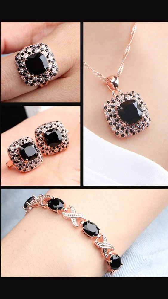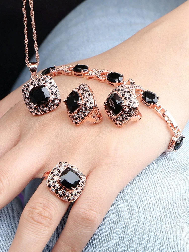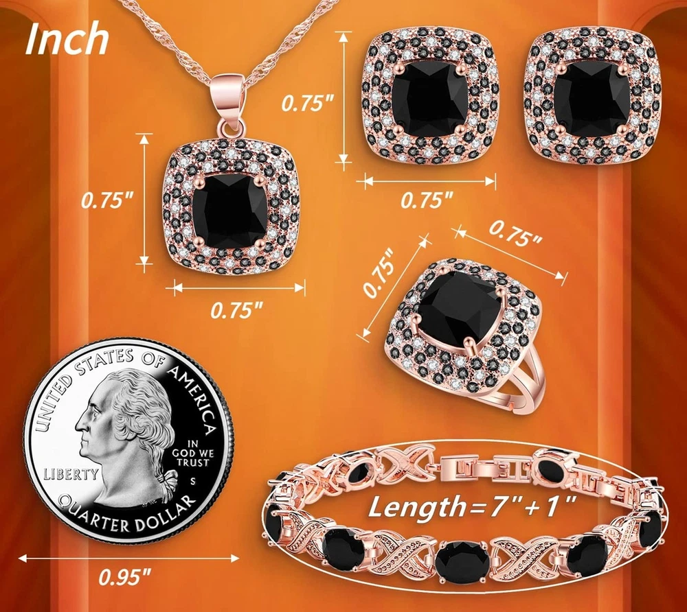 Jewelry Set for Women,Cubic Zirconia Tennis Necklace Ring Clips Earring Bracelet set,Wedding Birthday Anniversary Engagement Gift For Wife Girlfriend Best Friend Bridal Product Details Color: Rose Gold-Black Brand: BROCLY UPC: 751501758371 EAN: 0751501758371 MPN: Does not apply Department : womens Date First Available : March 8, 2023 Brand, Seller, or Collection Name: BROCLY Metal: platinum plated brass Material: Platinum, Rose Gold, Yellow Gold Gem Type: Cubic Zirconia Clasp: Lobster Clasp
