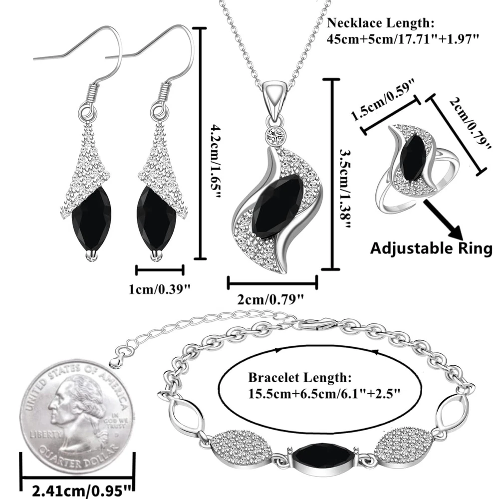 Jewelry Sets for Women Necklace Dangle Earrings Adjustable Ring Bracelet Costume Luxury Set for Women Girl Mom Wife Girlfriend Best Friend Ladies Bride bridesmaid Gift… Product Details Color: White Gold-Black Brand: ZCGJWE EAN: 9331739344686 MPN: Does not apply UPC: Does not apply Department : womens Date First Available : February 24, 2023 Brand, Seller, or Collection Name: ZCGJWE Metal: white gold plated brass Material: Copper Gem Type: Created Sapphire Setting: Prong Setting Clasp: Lobster Clasp Ring size: adjustable