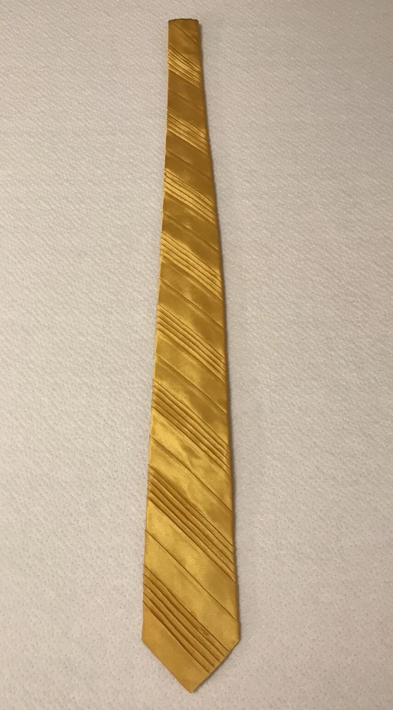 This Jhane Barnes Silk Satin Look Neck Tie in Gold is a stylish and elegant accessory for formal occasions. Made from luxurious silk with a pleated design, this designer tie adds a touch of sophistication to any outfit. The gold color and classic width make it suitable for a variety of events, from weddings to Easter celebrations. With adjustable sizing and a length of 56 inches, this tie is a perfect choice for those looking to elevate their formal look with a pop of color and a touch of preppy style. In a smoke free home.