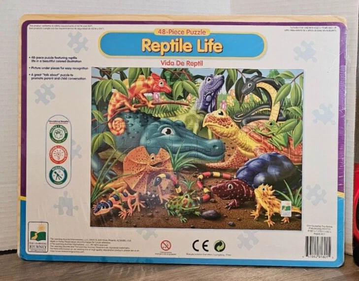 Explore the world of reptiles with this 48-piece jigsaw puzzle from The Learning Journey International. This puzzle features colorful and detailed images of various reptiles, perfect for young learners and puzzle enthusiasts alike. The puzzle is made with high-quality materials and is designed to provide hours of fun and educational entertainment. Get ready to embark on a journey through the prehistoric world with this Reptile Life puzzle. With its intricate design and attention to detail, this puzzle is sure to provide a challenging and rewarding experience for puzzle solvers. Whether you're a seasoned puzzler or just getting started, this puzzle is a great addition to any collection. See all pics for any wear, condition From smoke free environment Item shown is the exact item you will receive Be sure to follow us ~ Thriftynest2022 Ships from Portersville, Pennsylvania