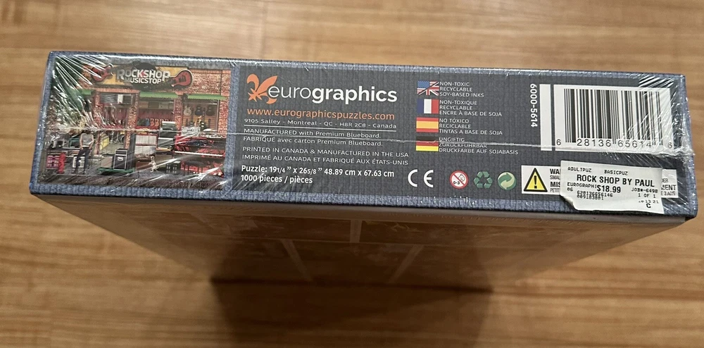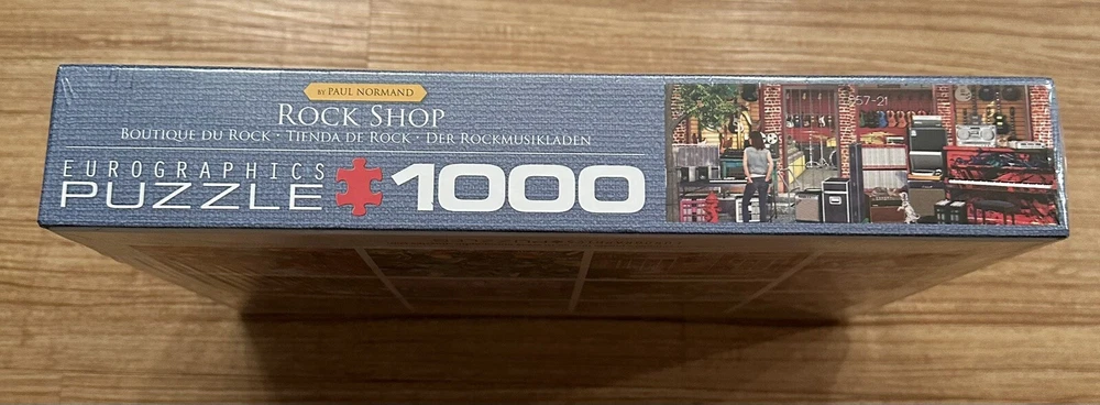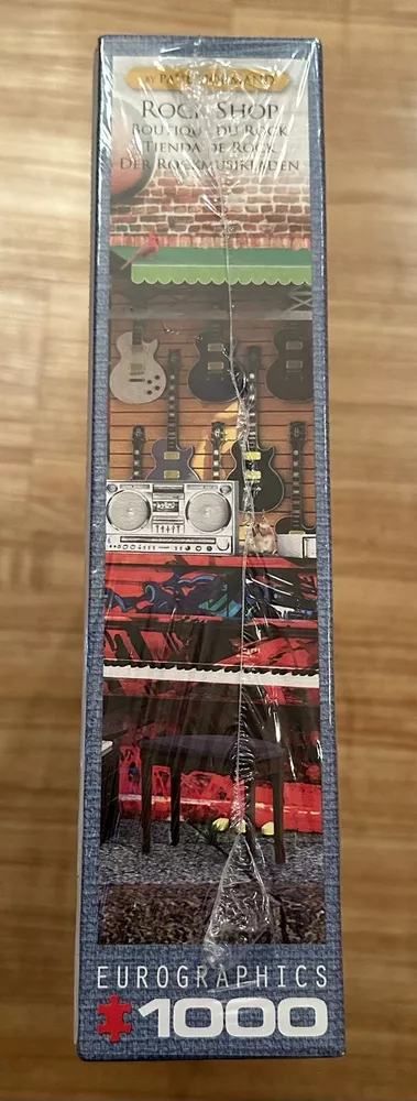 Experience the challenge and satisfaction of completing a 1000-piece puzzle with this Rock Shop Guitar puzzle game. Immerse yourself in the world of music and let your creativity flow as you piece together this colorful puzzle. The puzzle features a music shop theme, with a guitar vibe, making it perfect for any music lover. This contemporary jigsaw puzzle is a great addition to any toy or hobby collection. With a range of difficulty levels, it's suitable for both beginners and experienced puzzle solvers. Get ready to sharpen your skills and have fun all at once with this Jigsaw Puzzles 1000 Piece Puzzle. This puzzle is brand new still in the box and wrapping! It even still has the price tag on it! Great gift idea! Any questions please send me a message! INCLUDES BONUS 500 PC SURPRISE PUZZLE TOO!