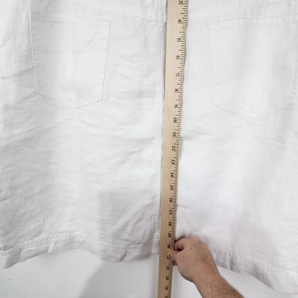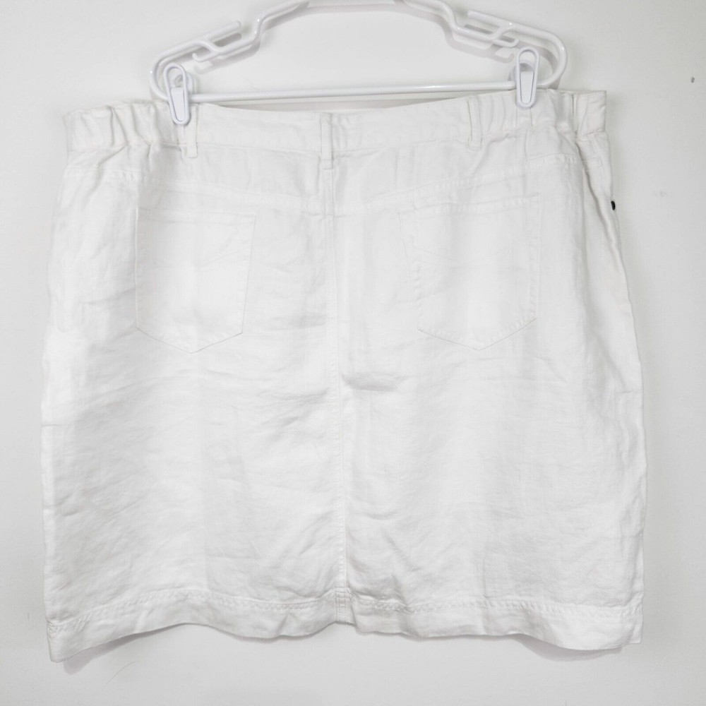 This is a pre-owned J.Jill Women's Knee Length Skirt in size 22. It is made of 100% linen, making it a comfortable and breathable choice for warm weather. The skirt is white, offering a versatile option that can be paired with a variety of tops and accessories. It's perfect for casual outings or can be dressed up for more formal occasions. A great addition to any wardrobe!