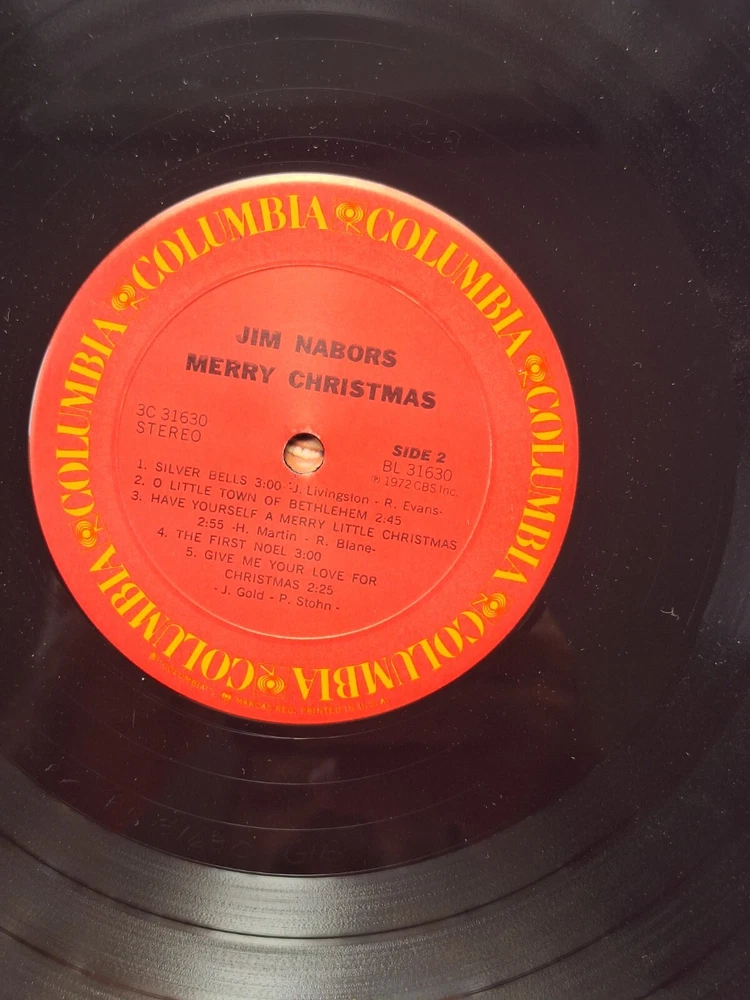 Language:EnglishMaterial:VinylColor:BlackRecord Label:ColumbiaRelease Year:1972Speed:33 RPMGenre:Easy Listening, Holiday, PopCountry/Region of Manufacture:United StatesRecord Grading:Very Good Plus (VG+)Release Title:MERRY CHRISTMASArtist:JIM NABORSRecord Size:12"Format:VINYLCase Type:Cardboard SleeveSleeve Grading:Very Good Plus (VG+)Seller Notes:“Plays well Shrink still on Jacket”Type:LPOccasion:Christmas