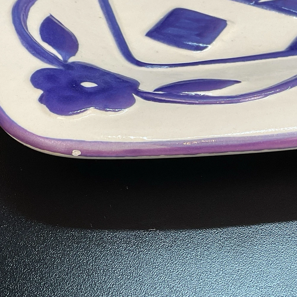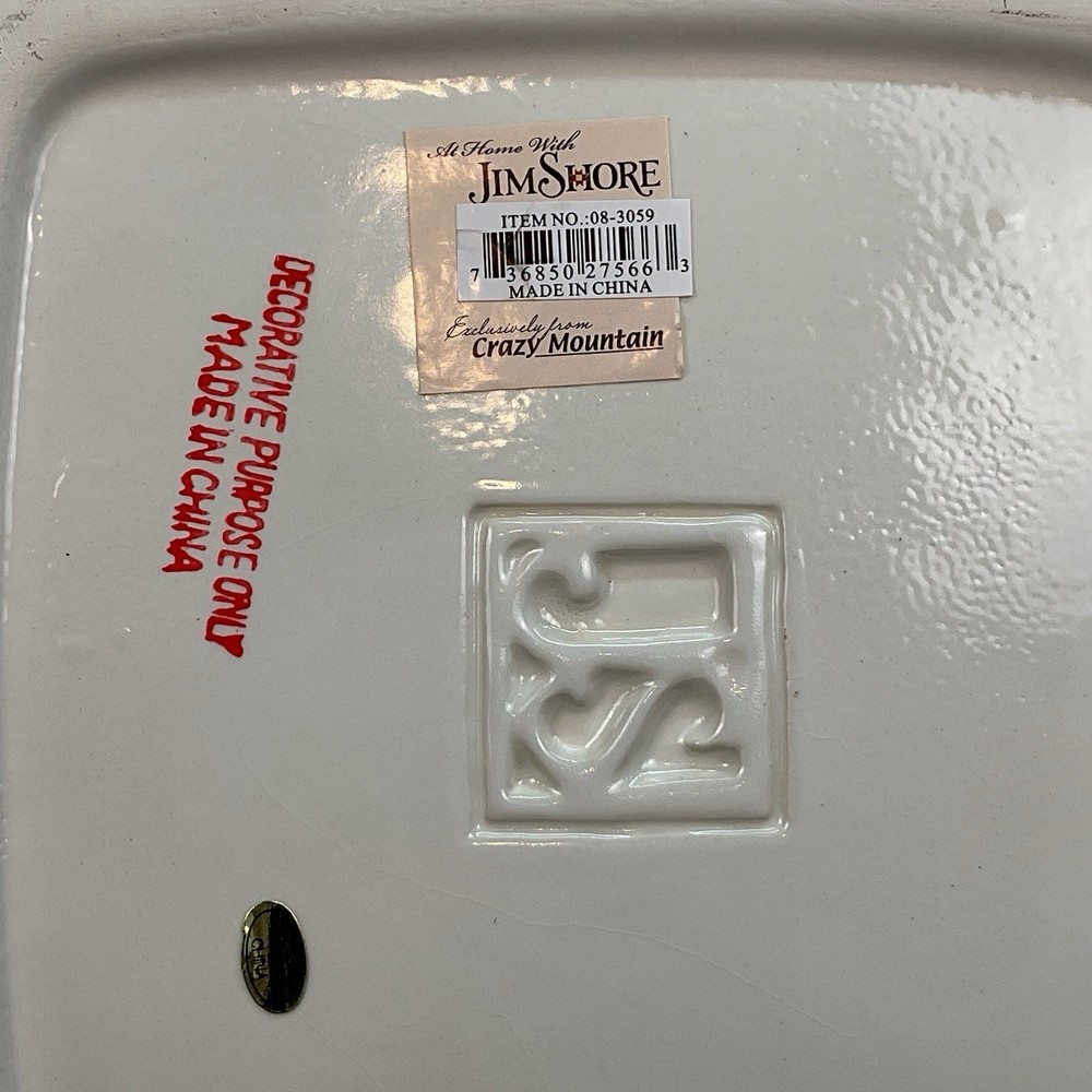 Set of two Jim Shore 10” x 10” decorative plates with blue and white folk style quilt block designs. Item number 08-3059, made in China, exclusively from Crazy Mountain. While both plates are blue, the plate with the heart design is darker blue while the other plate’s blue has a purplish tint to it. Also, the floral plate has a small chip on the rim, which is included in the photos. Selling in good preowned condition. Please see photos for measurements and additional details.
