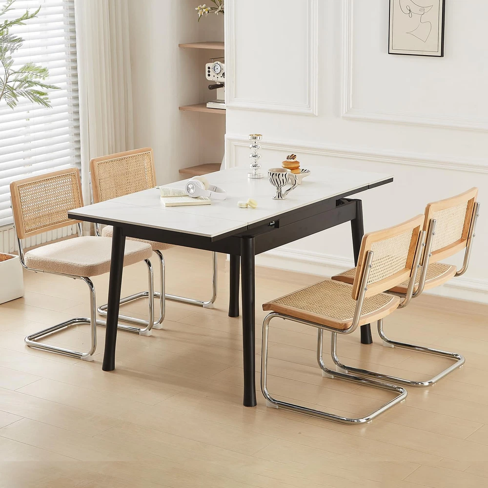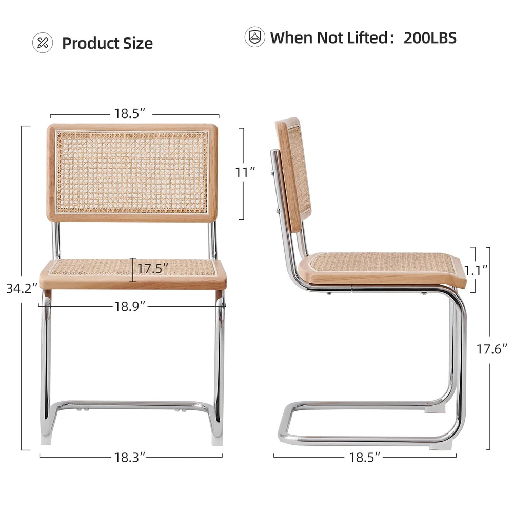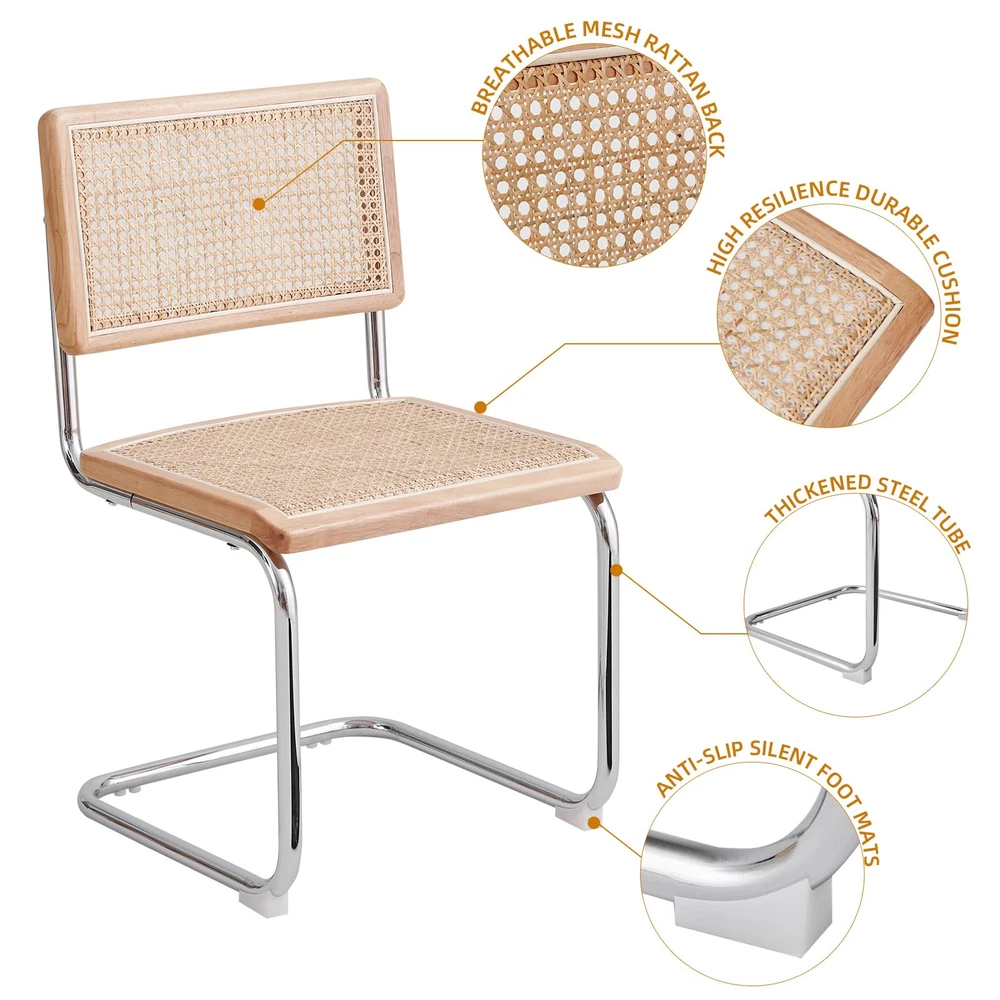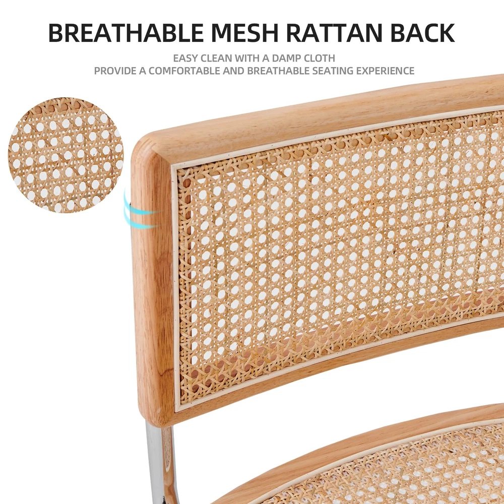 【Mid-Century Modern Design】Blending Minimalism with a touch of retro luxury, with sleek lines and simple design, We have 8 different materials and colors of seat for different styles of table, the rattan chair must be a perfect piece to your dream home. 【Ergonomic Design】Featuring an ergonomic hand-woven rattan back and padded seat with high-density foam cushioning,our cane chair ensure comfortable and breathable seating experience; The armless dining chair suitable for individuals of different body types, will not make people feel constrained; 【Sturdy and Durable】The robust metal frame enhances the durability of the kitchen table chairs, with a maximum weight-bearing capacity of up to 200 lbs.The floor is also protected from scratching thanks to the rubber feet on dining chair legs. 【Easy to Clean and Storage】The chairs can be stacked together for easy storage; installation is very simple, with instructions and tools!the backrest is not easy to dirty, high-quality rattan fabric seat is sitting for a long time without collapsing,resistant to dirty good wipe. 【Multipurpose&Excellent Customer Service】 Mid-century modern style, Sturdy chairs can be used in dining room, guest room, living room, kitchen, lounge, extra room and so on.We have worry-free quality assurance&friendly customer support, e-mail us when you need help.