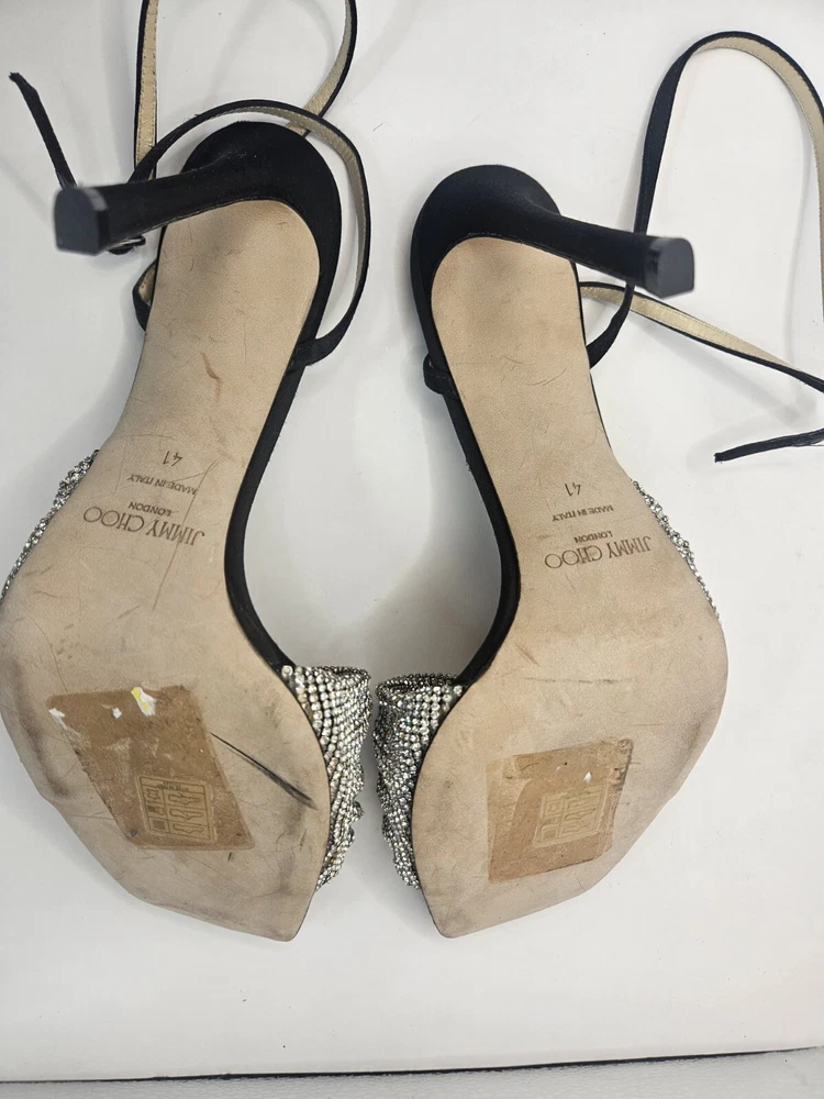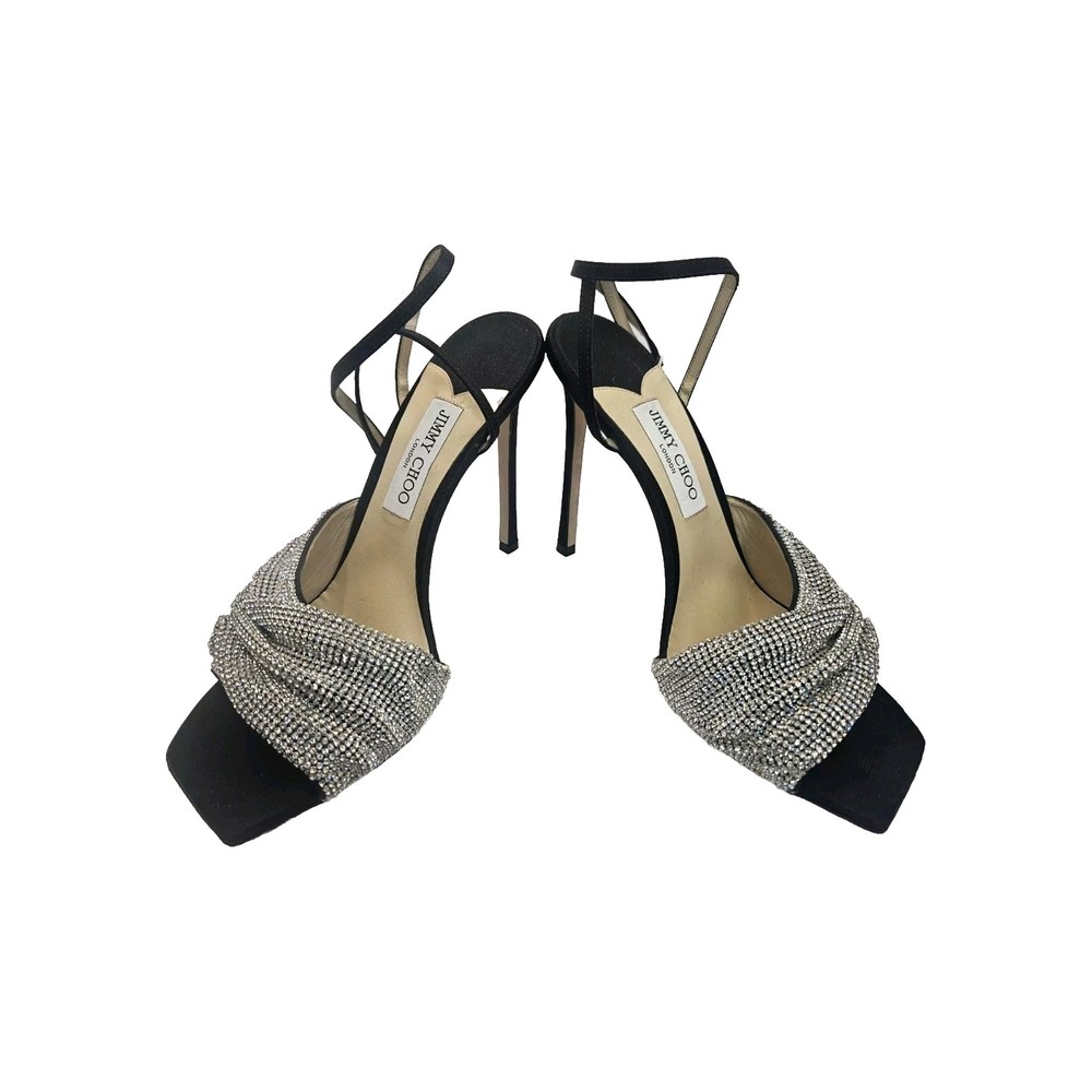 Jimmy Choo Naria 115mm crystal-embellished sandals Size - 41/ 11 New without box or dustbags From the site - Made in Italy silver-tone nappa leather crystal embellishment branded leather insole open toe buckle-fastening ankle strap 115mm high-heel