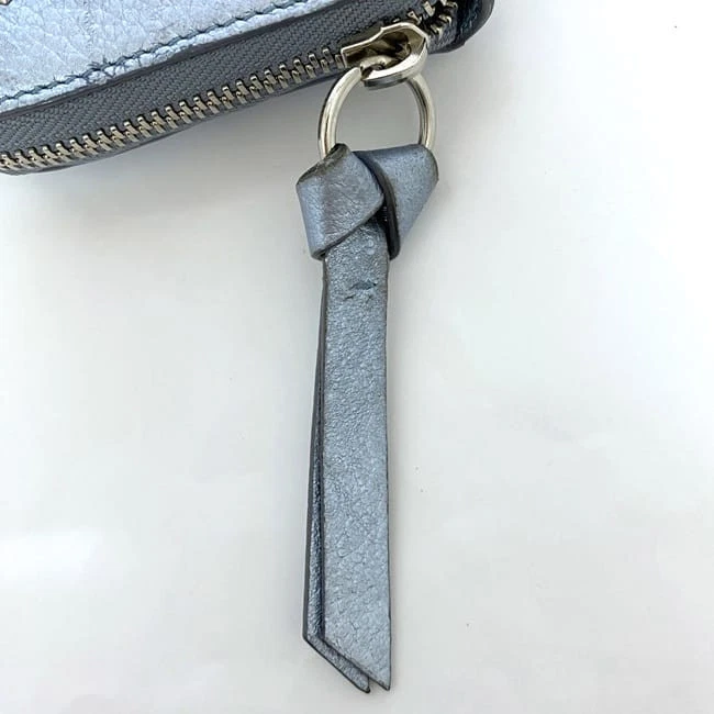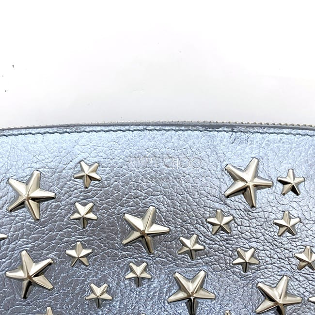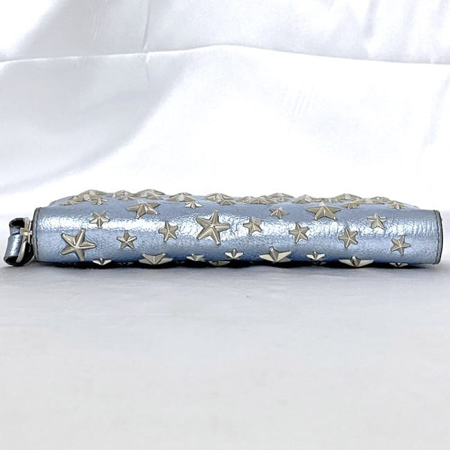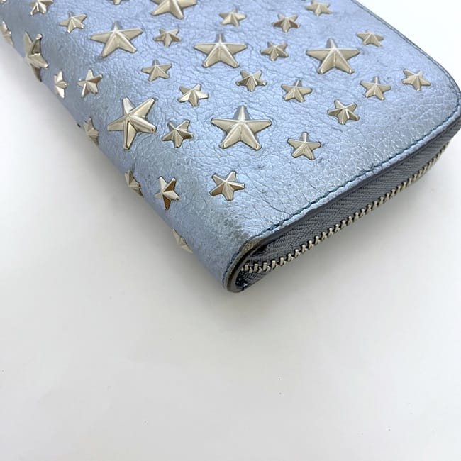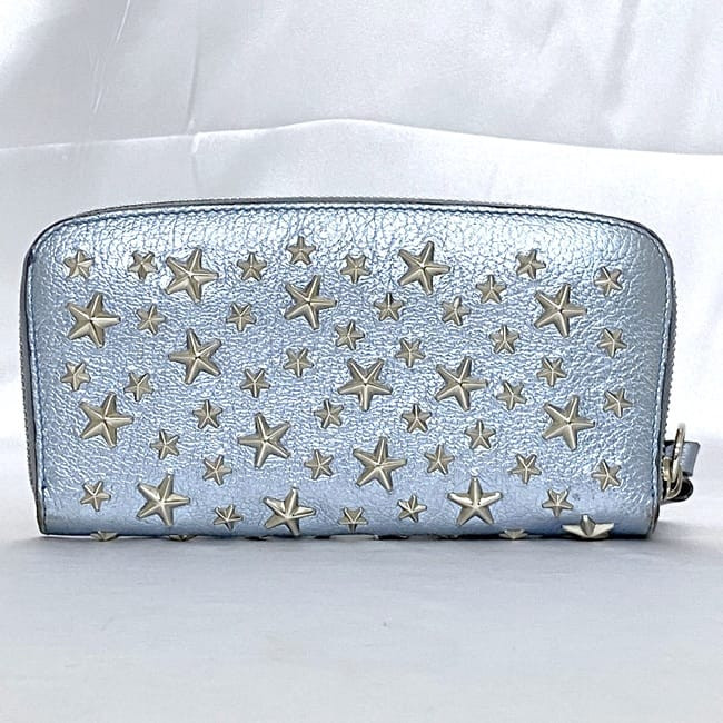 This Jimmy Choo Philippa wallet is absolutely stunning! The light blue leather with silver studs and star detailing gives it such a luxurious yet playful look. It arrived perfectly packaged and even sooner than expected. The leather feels premium and soft, with plenty of space for cards and cash. The seller shipped quickly and communication was great—highly recommend for anyone wanting a stylish, high-end wallet that stands out!