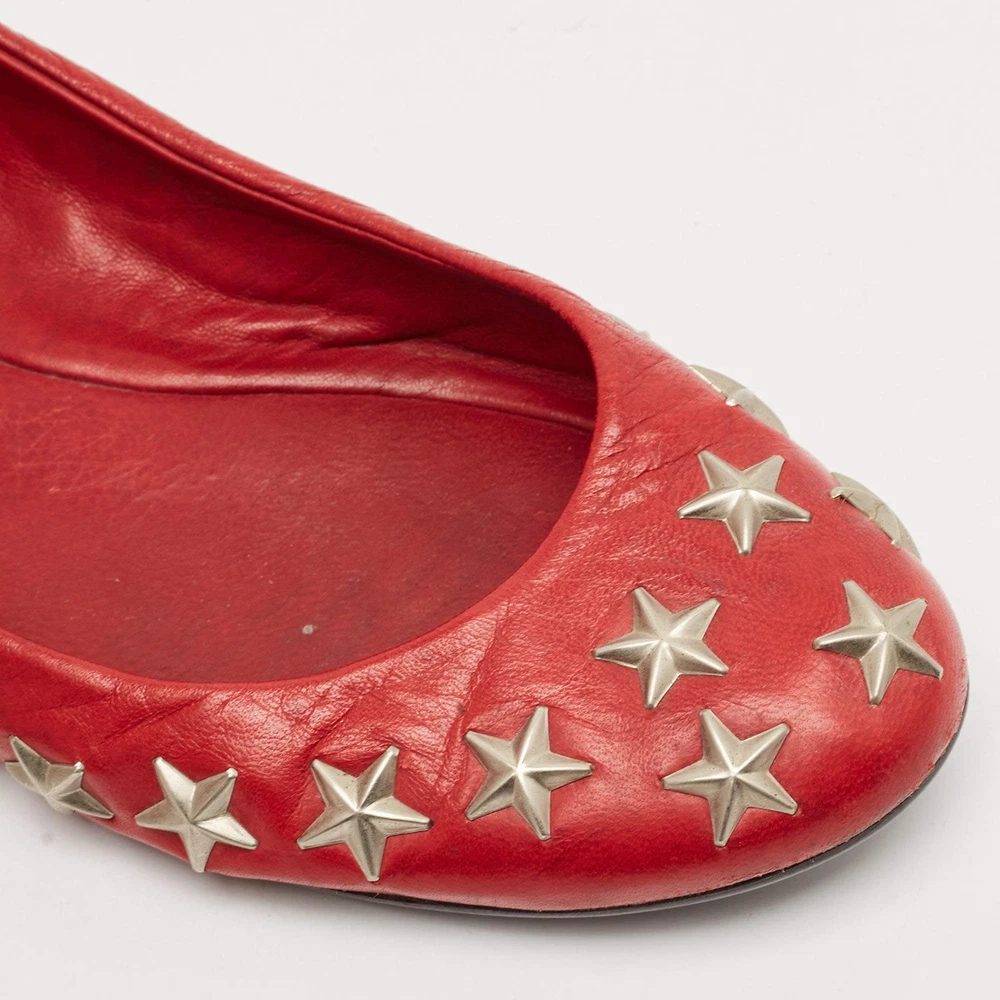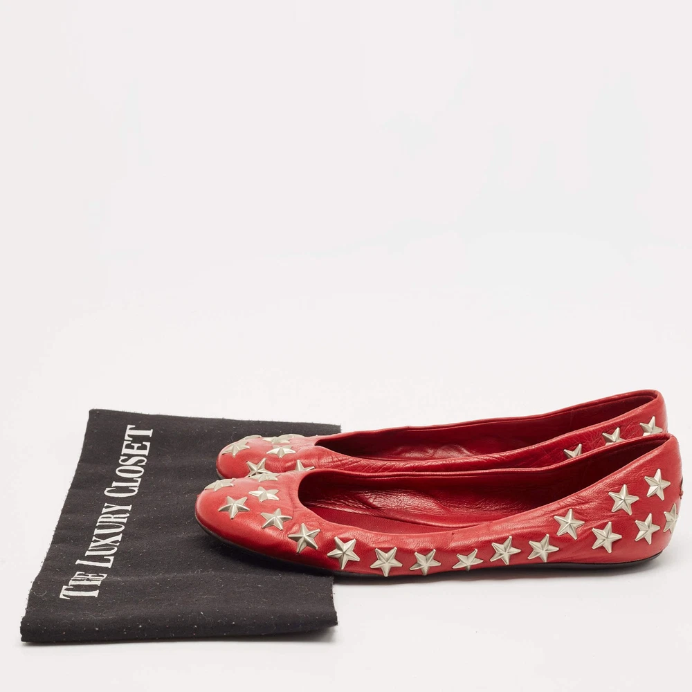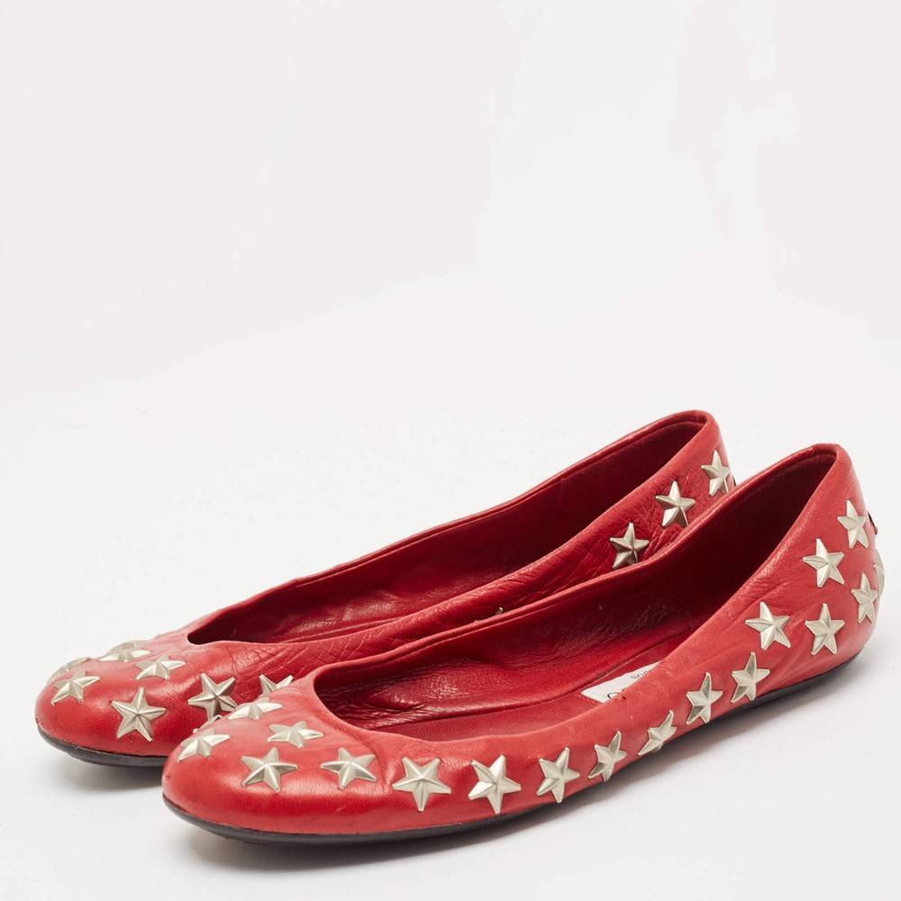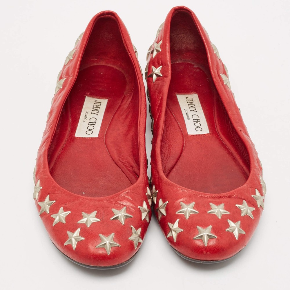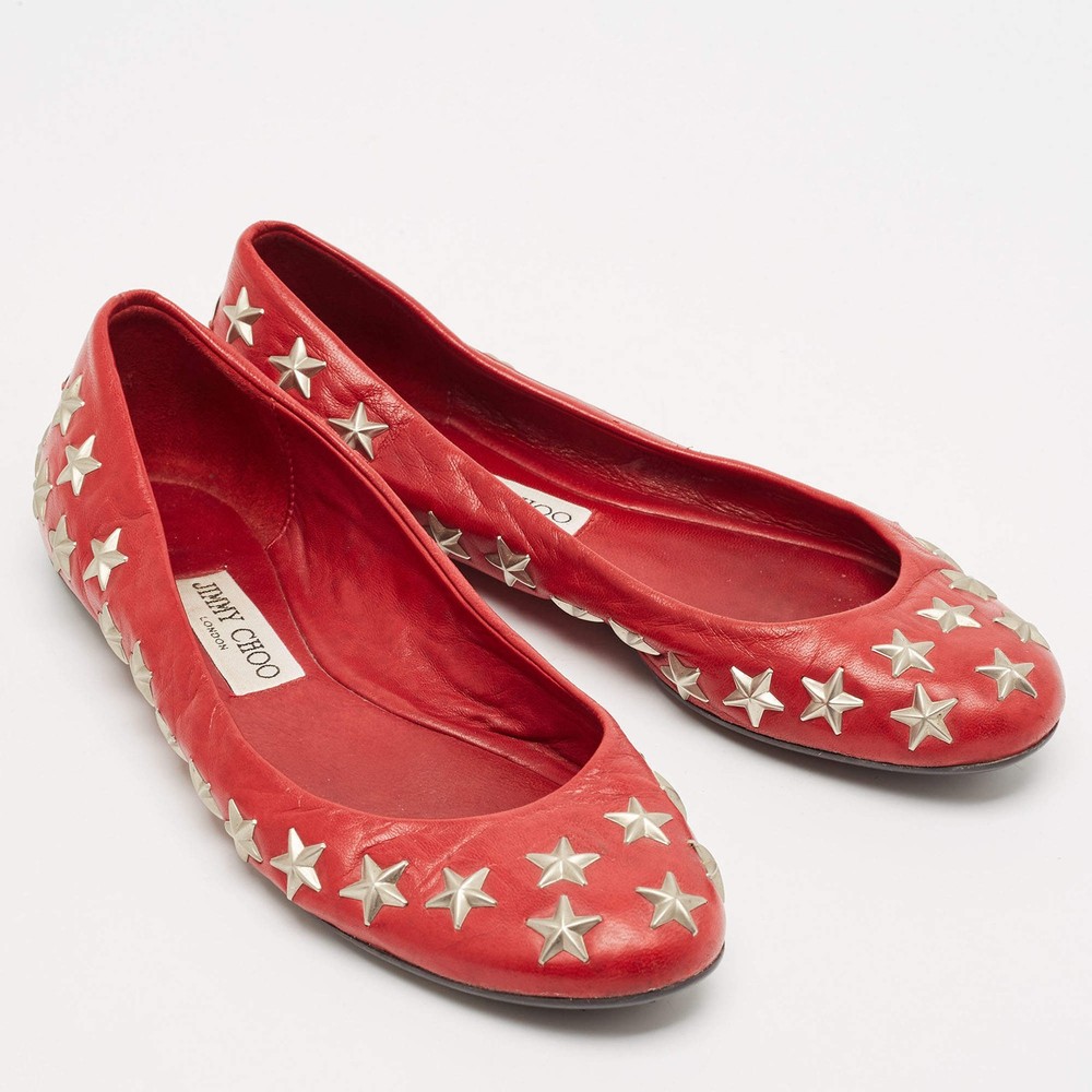 Our eBay Store About Us Contact Us Add to Favorite Sellers Jimmy Choo Red Leather Windsor Star Embellished Ballet Flat Size 37 A classic ballet flat gets a celestial upgrade with star embellishments. Crafted from smooth red leather, these Jimmy Choo flats are an easy way to add a pop of color to any outfit. Product Details Brand Jimmy Choo Color Red Includes The Luxury Closet Packaging Outsole Length 24 cm Outsole Width 8 cm Size 37 Certified by The Luxury Closet This item has gone through a detailed authentication process overseen by our experts. We offer a lifetime guarantee of authenticity on all our items. How We Check The in-house team of experts at The Luxury Closet is highly trained to verify the authenticity and the condition of the luxury products. They ensure that only 100% authentic items are put on sale.The evaluation process is unique with its own mix of assessment criteria and differs according to the category. Each item is evaluated based on the following combination of hallmarks, hardware, stitching, symmetry, material, craftsmanship, stamping, codes, hologram stickers, and packaging. Our authenticators also check if the items have been modified or amended (e.g., aftermarket diamonds, replaced batteries, repaired bags, etc.) International Buyers Import duties, taxes and charges are not included in the item price. These charges are the buyers responsibility. Please check with your country’s customs office to determine what these additional cost will be prior to buying.