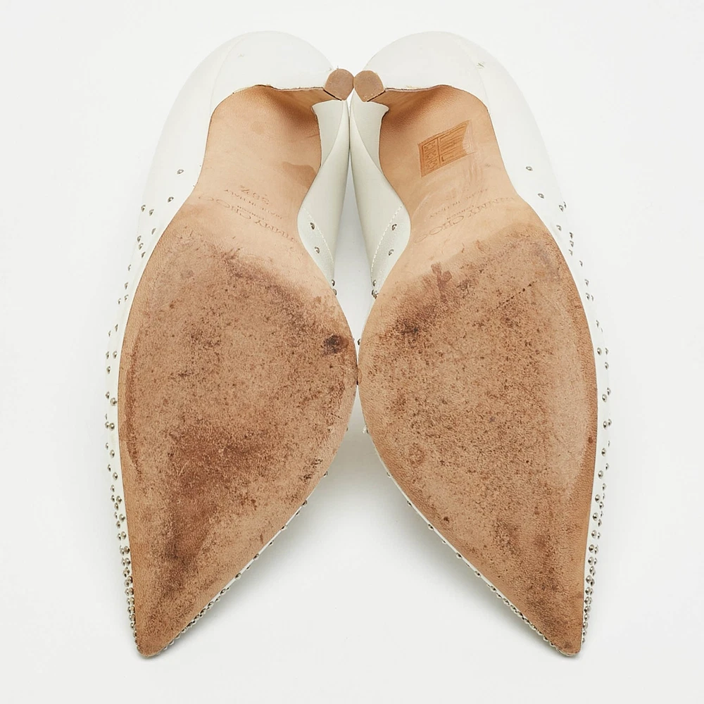These white leather pumps are where timeless design meets modern allure. Artfully crafted in Italy, the pointed toe silhouette is adorned with delicate pearl embellishments, offering a touch of opulence.Certified by The Luxury Closet - This item has gone through a detailed authentication process overseen by our experts. We offer a lifetime guarantee of authenticity on all our items. Import duties, taxes and charges are not included in the item price. These charges are the buyers responsibility. Please check with your country’s customs office to determine what these additional cost will be prior to buying. Our eBay Store About Us Contact Us Add to Favorite Sellers Jimmy Choo White Leather Romy Pearl Embellished Pointed Toe Pumps 36.5 $185.9 These white leather pumps are where timeless design meets modern allure. Artfully crafted in Italy, the pointed toe silhouette is adorned with delicate pearl embellishments, offering a touch of opulence. Product Details Brand Color White Dimensions Material Leather Size 36.5 Outsole Width 8 cm Outsole Length 25 cm Heel Height 11 CM Includes The Luxury Closet Packaging Certified by The Luxury Closet This item has gone through a detailed authentication process overseen by our experts. We offer a lifetime guarantee of authenticity on all our items. How We Check The in-house team of experts at The Luxury Closet is highly trained to verify the authenticity and the condition of the luxury products. They ensure that only 100% authentic items are put on sale.The evaluation process is unique with its own mix of assessment criteria and differs according to the category. Each item is evaluated based on the following combination of hallmarks, hardware, stitching, symmetry, material, craftsmanship, stamping, codes, hologram stickers, and packaging. Our authenticators also check if the items have been modified or amended (e.g., aftermarket diamonds, replaced batteries, repaired bags, etc.) International Buyers Import duties, taxes and charges are not included in the item price. These charges are the buyers responsibility. Please check with your country’s customs office to determine what these additional cost will be prior to buying.