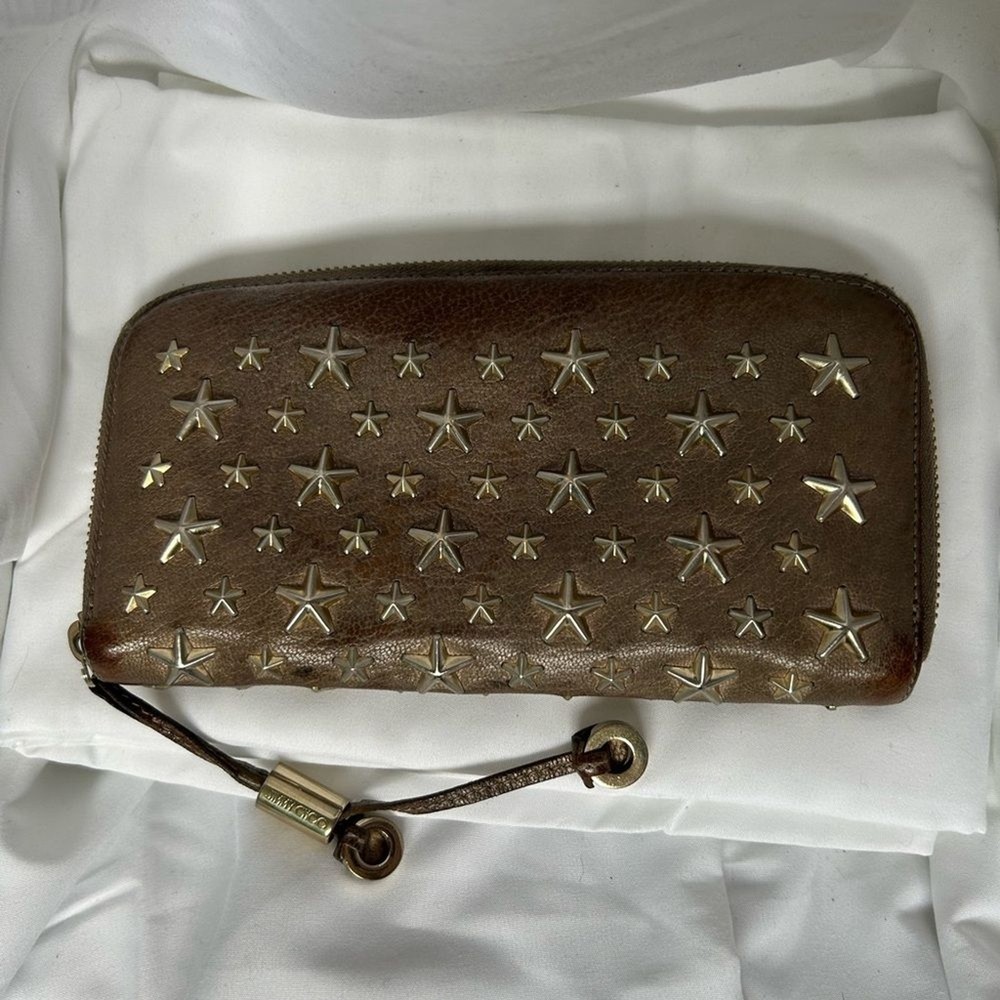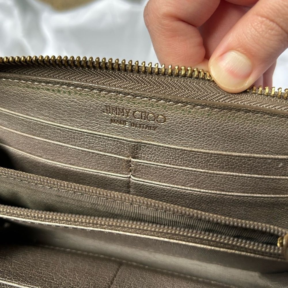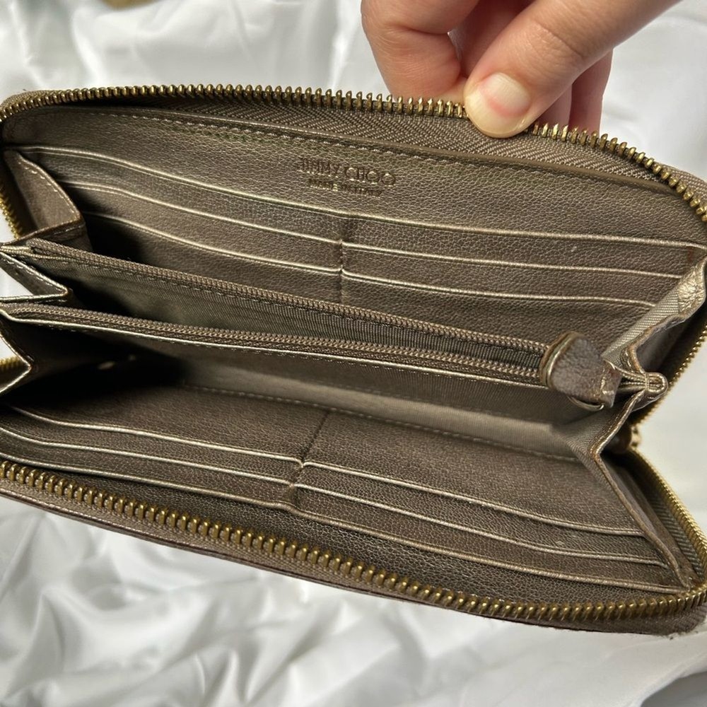 Elegant taupe leather wallet with sleek design. Features multiple card slots and compartments. Price reflects condition shown in photos, wallet is intact with some wear